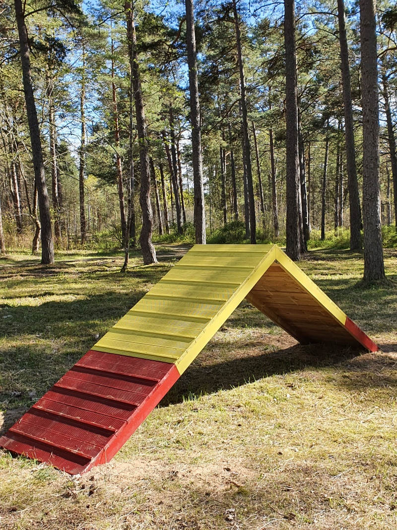 Agilityhinder i A-form med lutande ytor som tränar balans, koordination och samarbete.