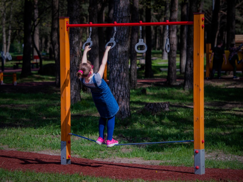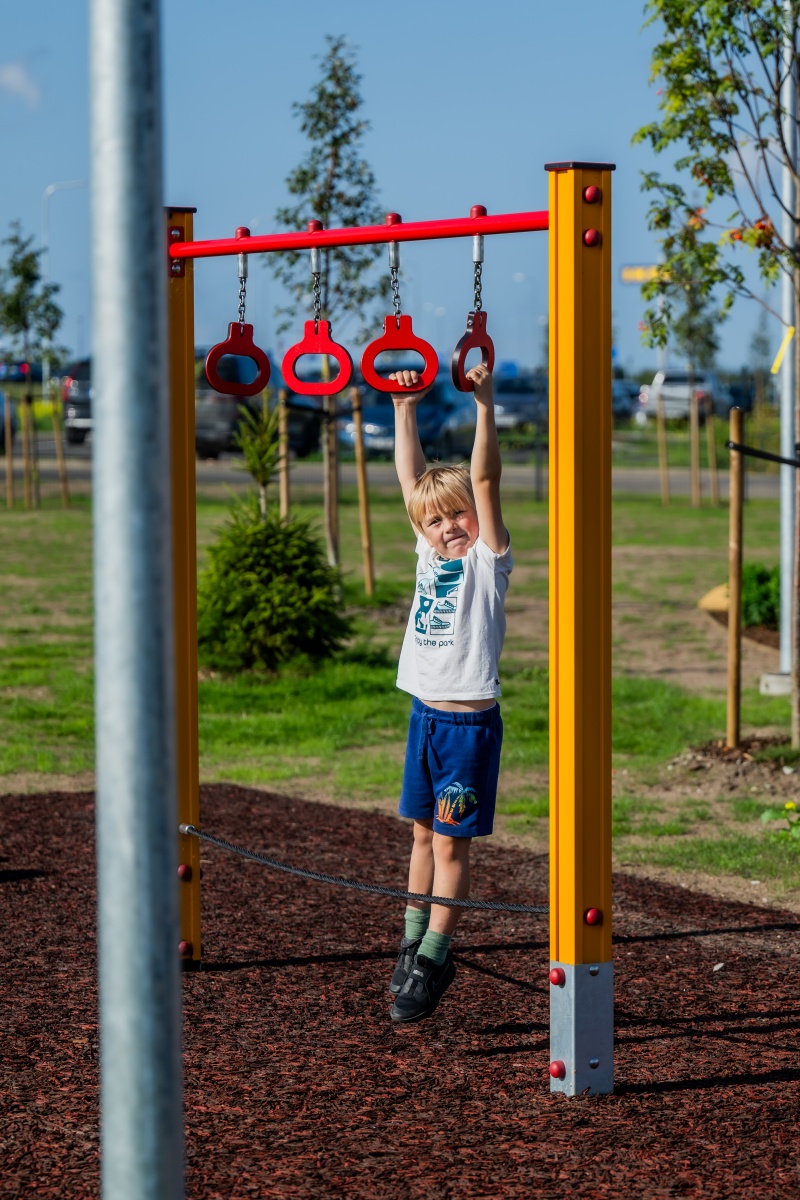 Balansredskap för offentlig utemiljö som tränar balans, koordination och motorik i daglig lek.
