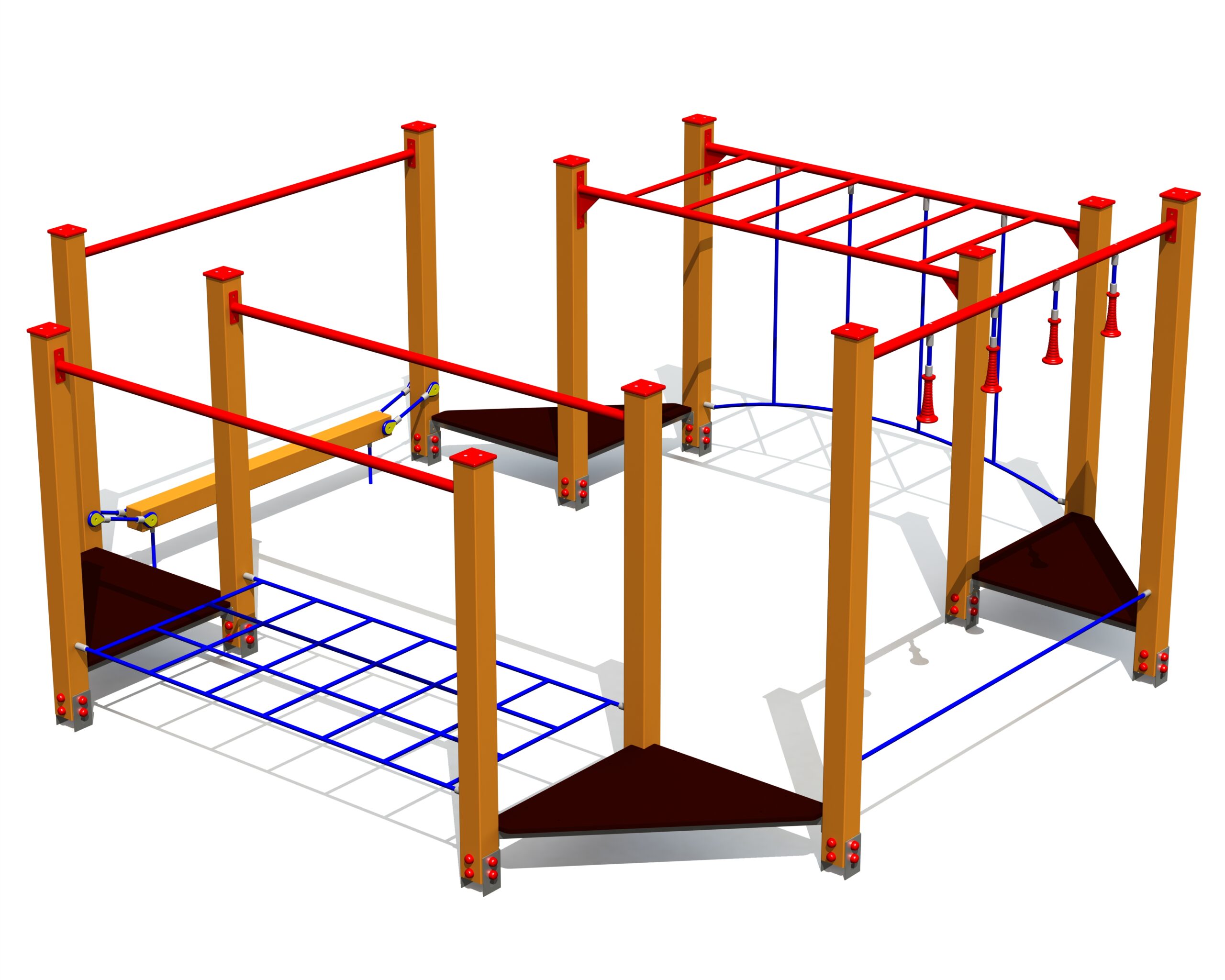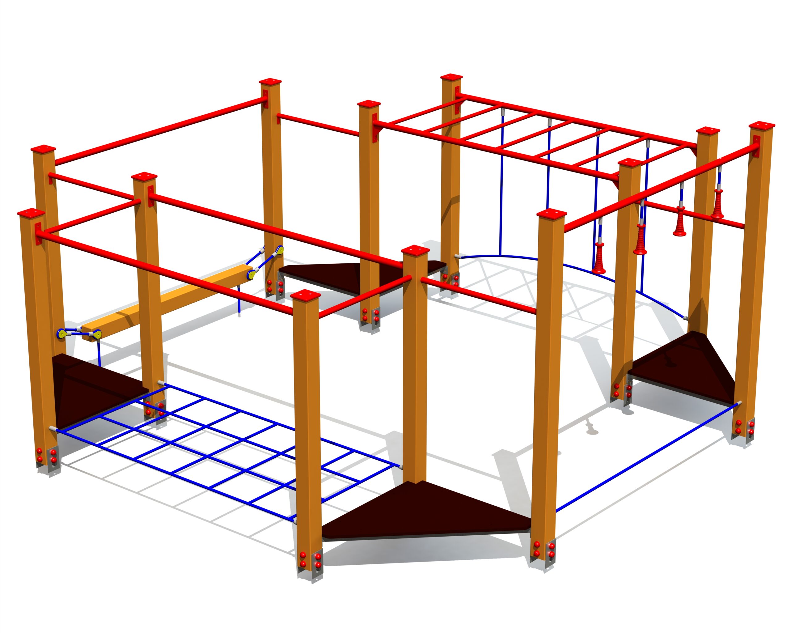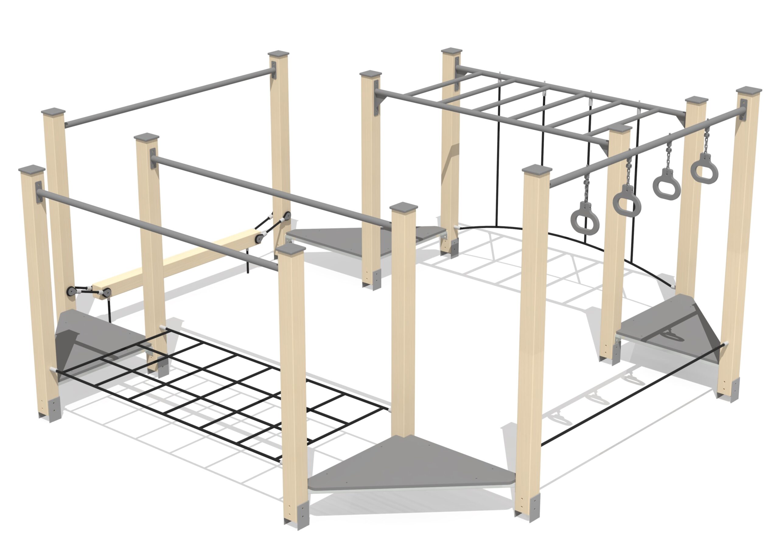 Produkten är utvecklad för lekplatser, förskolegårdar och andra offentliga utemiljöer där utrustningen behöver tåla regelbunden användning över tid. Modellen uppmuntrar barn att träna kroppskontroll, koordination och självförtroende genom aktiv rörelse. Mått enligt specifikation: cirka 4 x 4 x 2,02 m. Rekommenderad ålder: 4+. En hållbar lösning för långsiktig drift och trygg användning i offentlig utemiljö.
