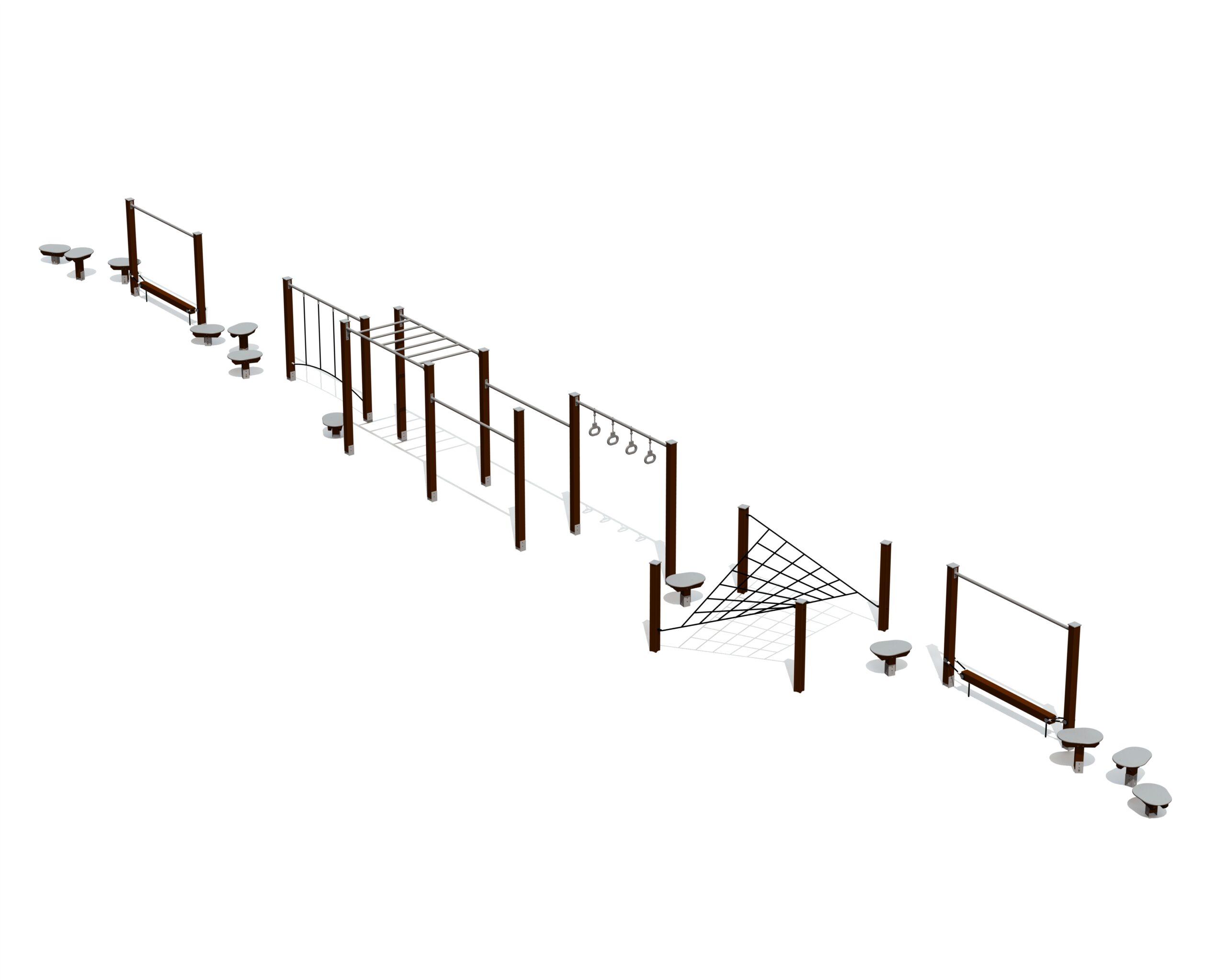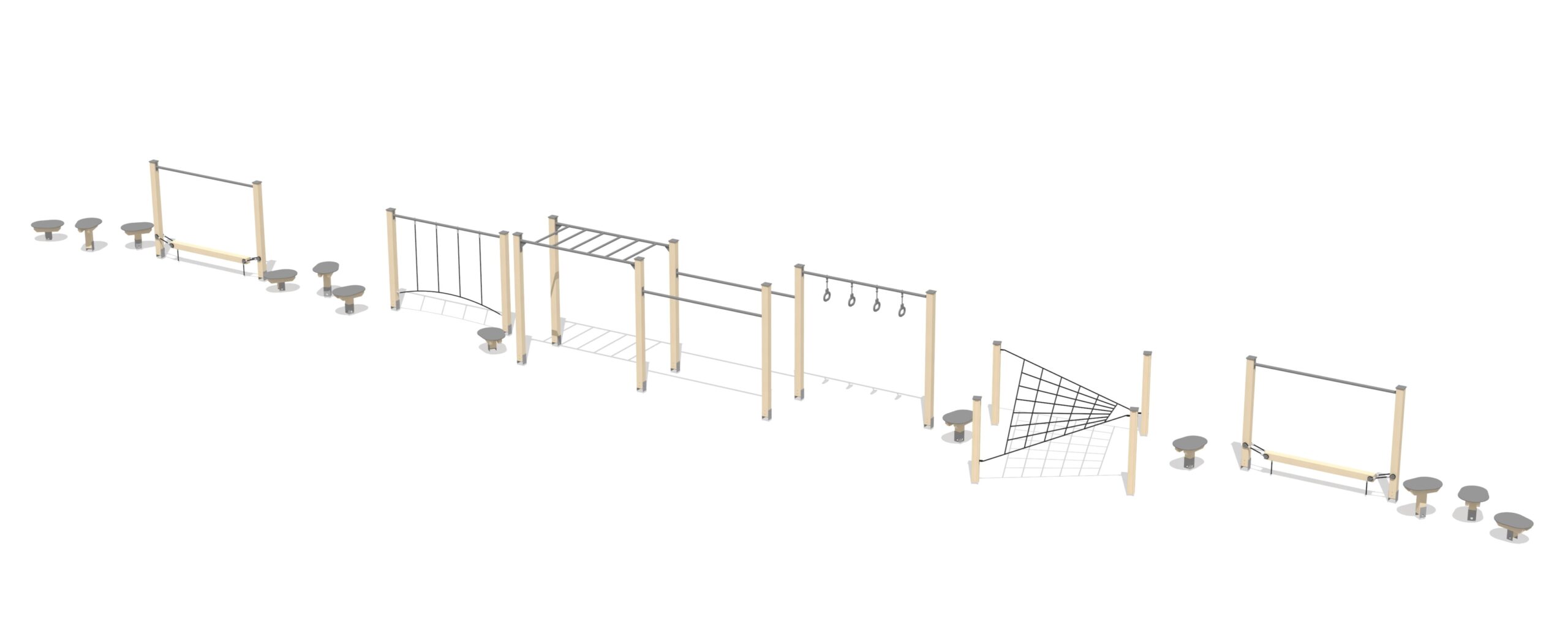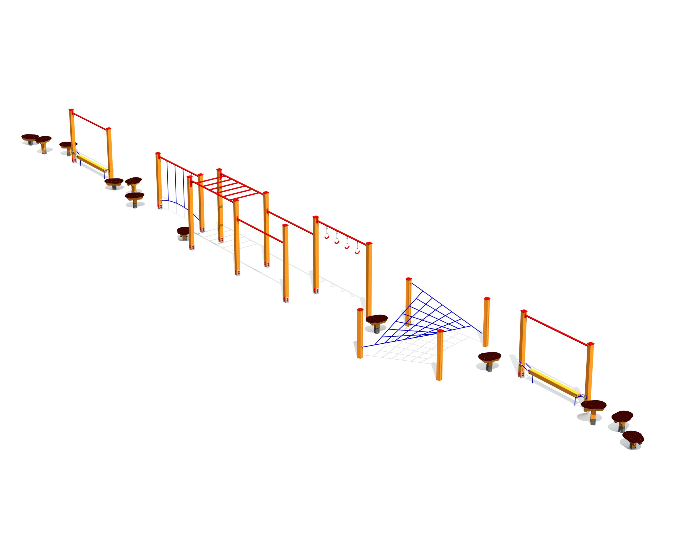Produkten är utvecklad för lekplatser, förskolegårdar och andra offentliga utemiljöer där utrustningen behöver tåla regelbunden användning över tid. Modellen uppmuntrar barn att träna kroppskontroll, koordination och självförtroende genom aktiv rörelse. Mått enligt specifikation: cirka 24,88 x 2,82 x 2,16 m. Rekommenderad ålder: 4+. En hållbar lösning för långsiktig drift och trygg användning i offentlig utemiljö.