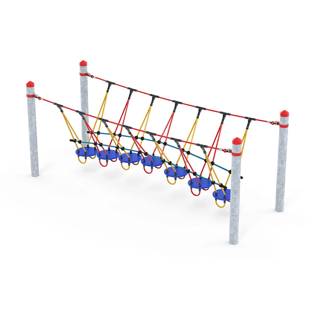 Balansredskap Movio är ett balansredskap som stärker barns motorik genom kontrollerad rörelse och upprepad träning. Produkten uppmuntrar till koncentration, kroppskännedom och samspel. Den är anpassad för daglig användning i offentlig miljö. Mått (L x B x H): 310 cm x 110 cm x 144 cm. Max fallhöjd: 65 cm. Rekommenderad ålder: Från 2 år.