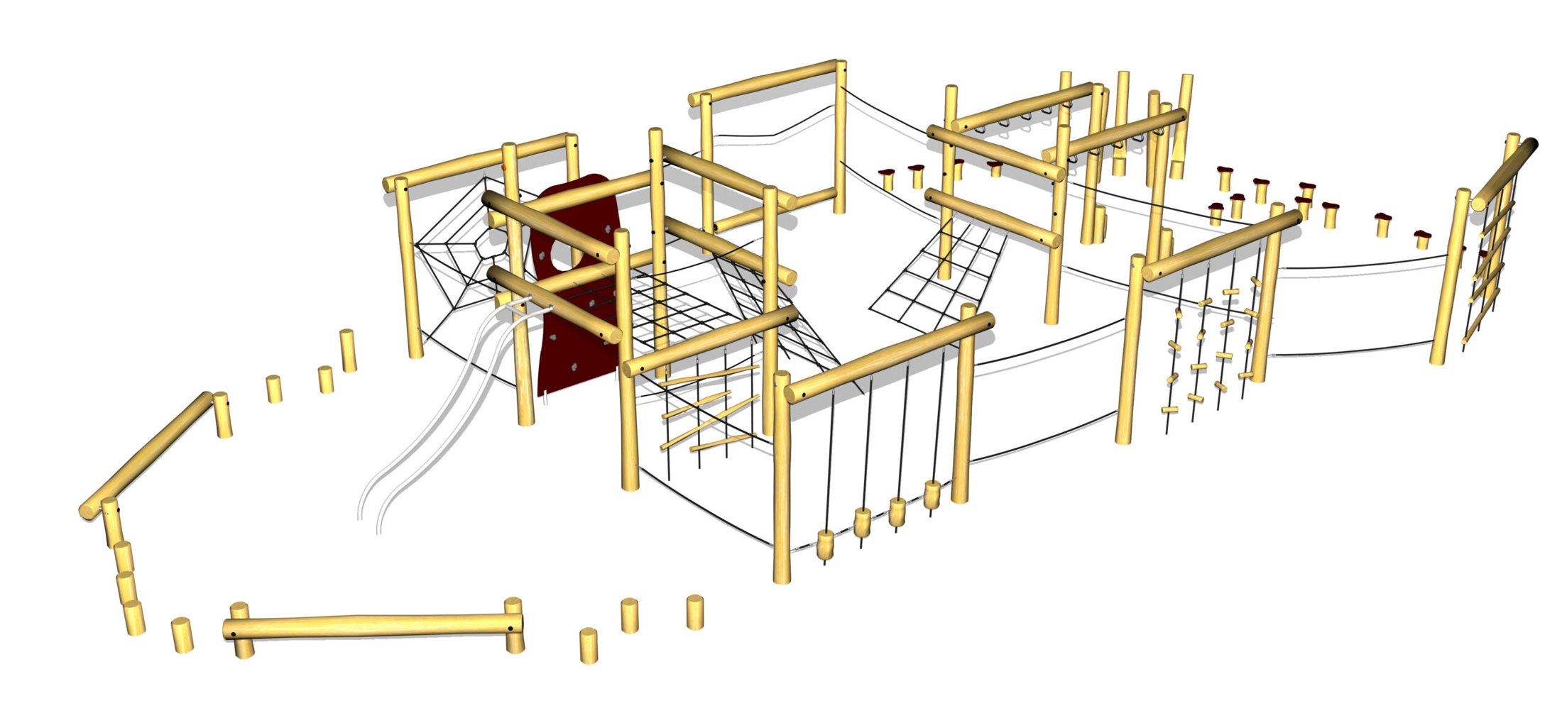 Denna produkt är utformad för att stimulera balans, motorik och koordination i offentlig lekplatsmiljö. Stor climbing system that is built together but balance track elements. Teknisk information: Åldersgrupp: 3+. Fallhöjd: 240 cm. Säkerhetsyta: 19.95 x 12 m. Säkerhetsyta m2: 192. Vikt: 1000 kg. Största enskilda del: 400 cm. Monteringstid: 25 hours.