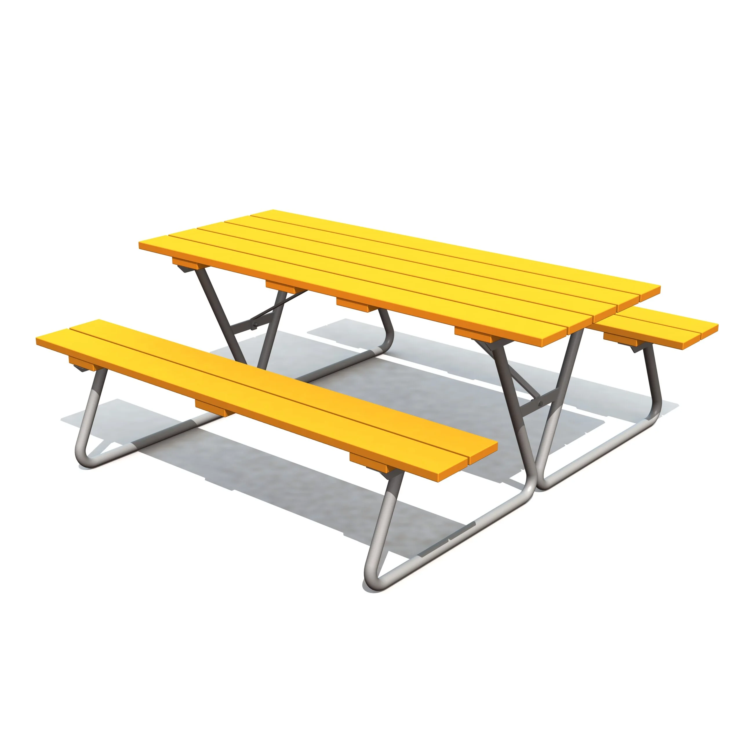Bänkbord i varmförzinkad metall och väderbeständigt limträ för barn och vuxna.