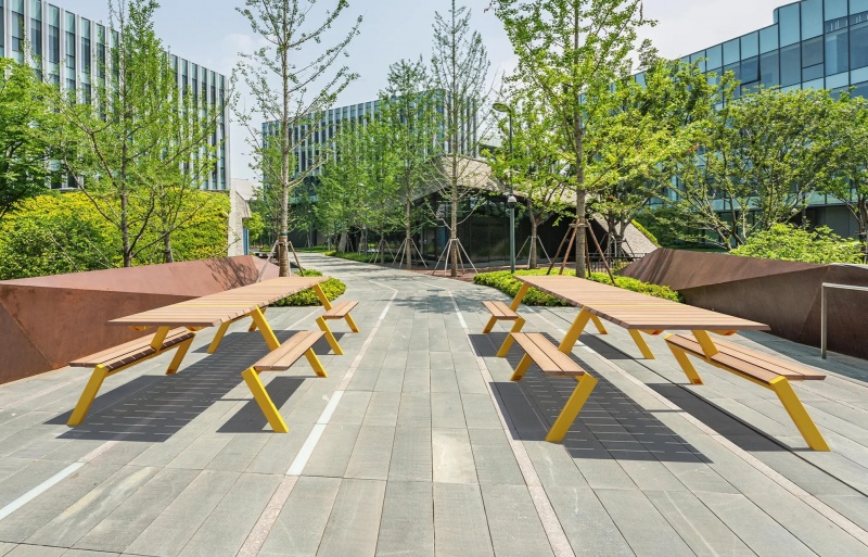 Bänkbord Raadi Stor 8-10-sits är en förlängd picknicklösning för större grupper i offentlig utemiljö. Utförandet består av två picknickset med en sammanbindande bordsskiva som skapar en lång och funktionell samlingsyta. Ramen är uppbyggd av delar som bultas samman, och konstruktionen kan placeras fristående eller förankras vid behov. Sitsar och bordsskiva är tillverkade av massiva träbrädor, medan ståldelarna har korrosionsskyddande zinkskikt och pulverlack. Bordet är dimensionerat för 80 kg jämnt fördelad last. Standardutförandet är thermo-ash med möjlighet till projektanpassade färg- och materialval. Produkten är utformad för daglig användning i offentlig miljö och ger stabil funktion över lång tid.