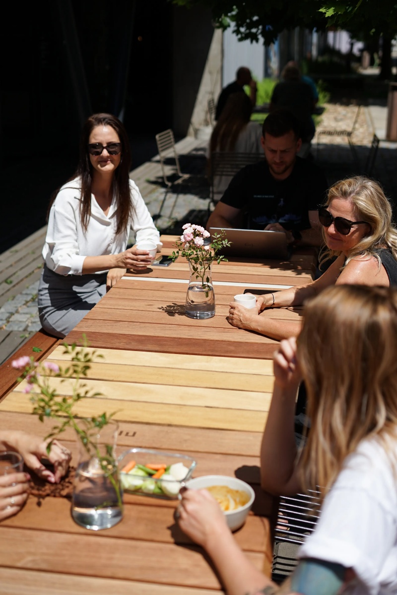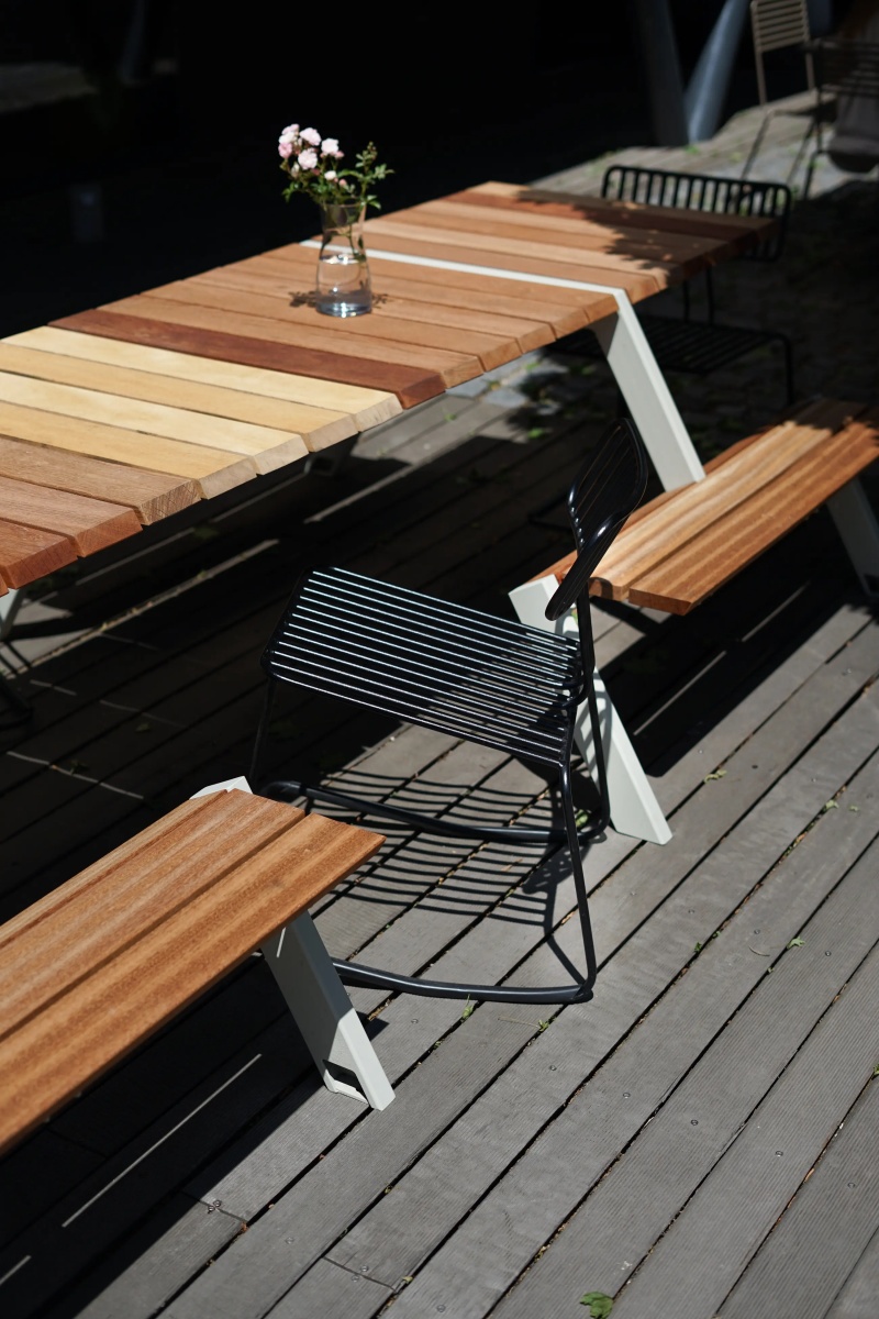 Bänkbord Raadi Stor 8-10-sits i trä och pulverlackerat stål för större samlingsytor.
