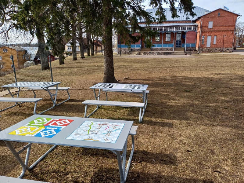 Barnanpassat bänkbord med speltema för lek, paus och sociala aktiviteter utomhus.