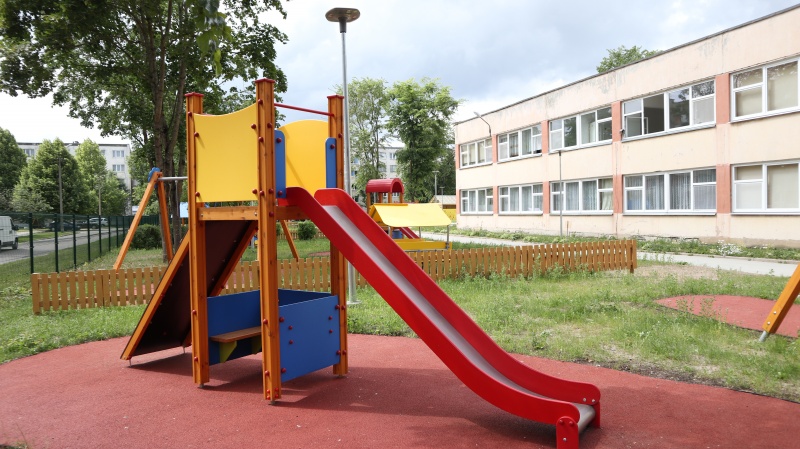 En rutschkana med ränna och ramp med stegpinnar. Det finns en rolig lekhörna med en bänk under plattformen, som kan förses med antingen köks- eller bilinstrumentpanelselement. Utsidan är försedd med en klocka aktivitetspanel som hjälper till att lära sig att säga tid. Lekcentrets sidopaneler kan växlas till olika aktivitetsväggar eller tematiska tryckta paneler (djur, fåglar, fiskar, träd, bär, etc.). Utformningen av panelerna kommer att slutföras med kunden vid beställning.