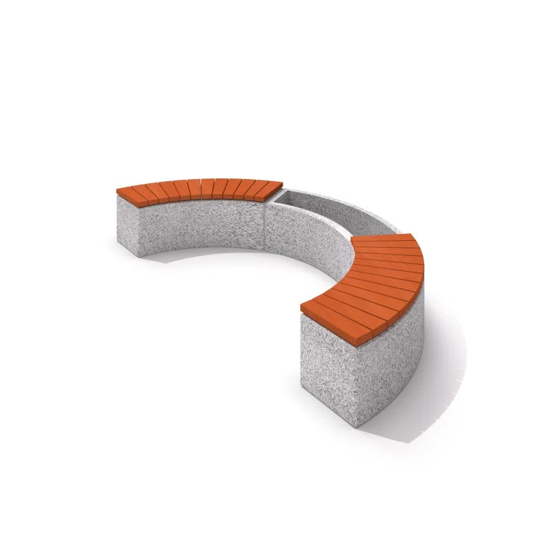 . Set: arched planter KT-0 5-CR-0 01 Gjord av concrete reinforced med stål och 2 benches KT-0 1-CR-0 03 on a plancircle (ca. 3 m.Diameter). Seatthe bench can be Gjord av 3 typeswood (spruce trä, alder trä or sapele mahogany trä) available in 7 colours. Planter med drain hole on bottom.