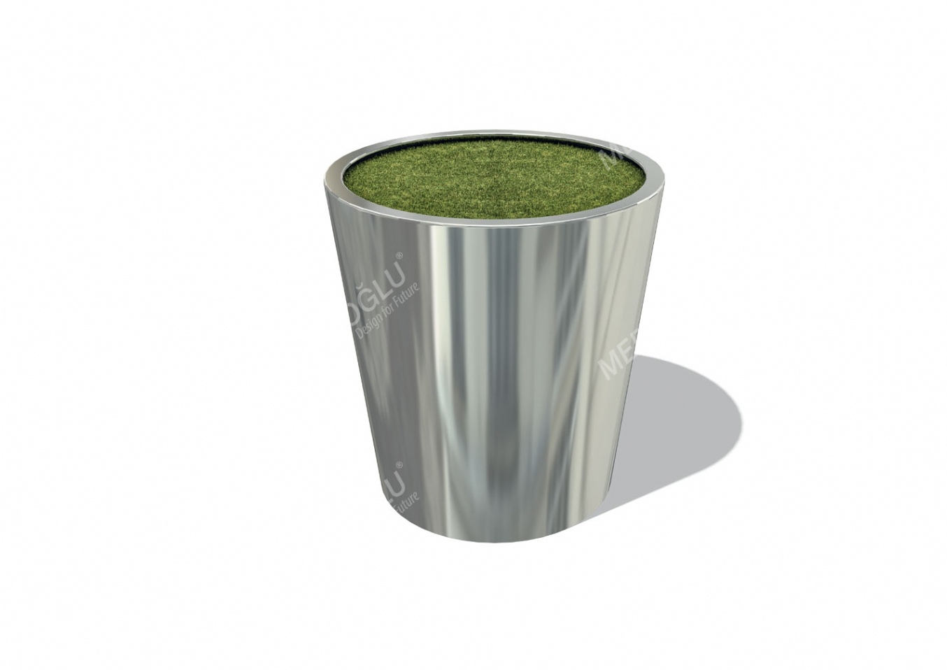 Blomlåda Delari i rostfri plåt för offentlig miljö.