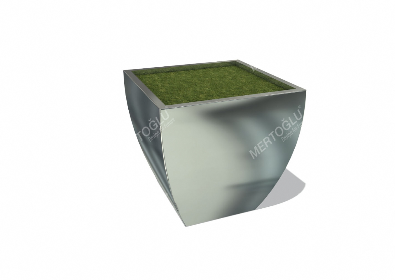 Blomlåda Delola i rostfri plåt för offentlig miljö.