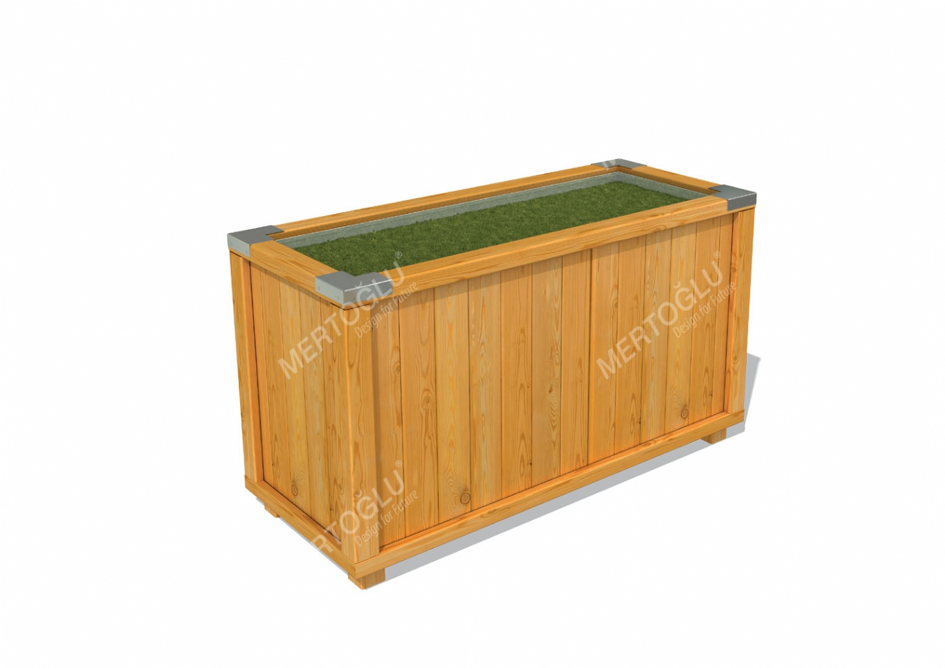 Blomlåda Eli i rostfri plåt och imregnated pine för offentlig miljö.