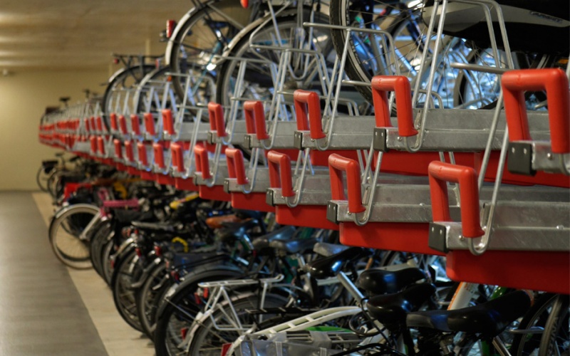 Cykelställ med 16 platser i glas och plast.