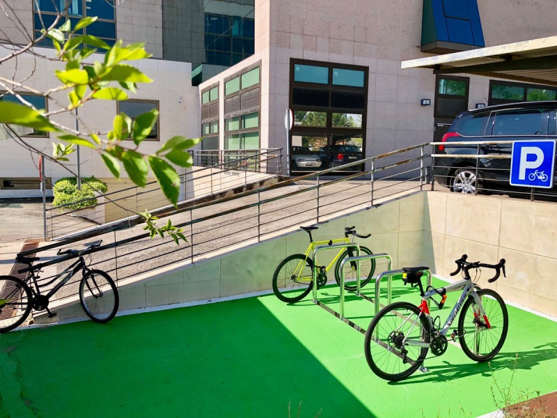 Cykelställ med 8 platser i rostfritt stål, stål och plast.