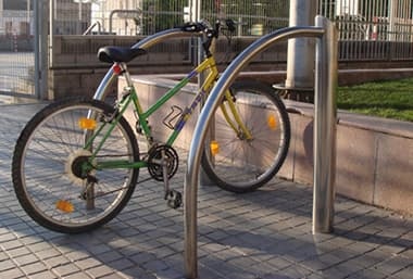 Cykelställ med 8 platser i rostfritt stål och plast.