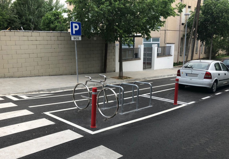 Cykelställ med 2 platser i rostfritt stål och plast.