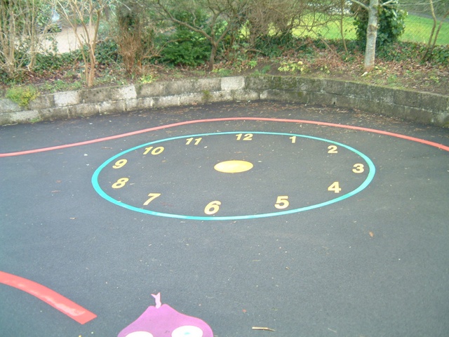 Ett klockspel där barnen själva fungerar som visare och hoppar till rätt siffra när olika tider anges. Ett effektivt och engagerande hjälpmedel för utomhuslektioner som väcker intresse för tid och tidtagning. Lämpligt för montering på asfalt eller sten och fästs genom uppvärmning/smältning.