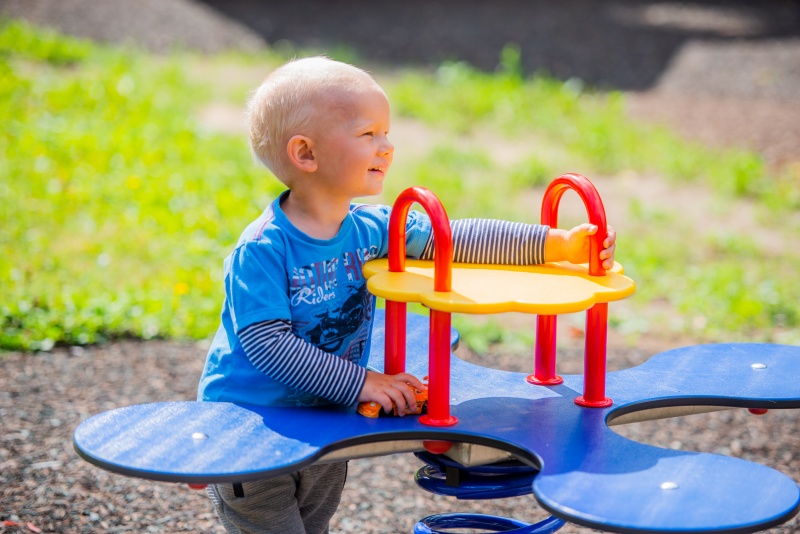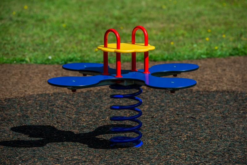 Blomma är en fjädergunga där fyra barn sitter vända mot varandra på blombladsformade säten. När barnen gungar tillsammans lär de sig samspel och rytm, samtidigt som balansen utmanas på ett lekfullt sätt.