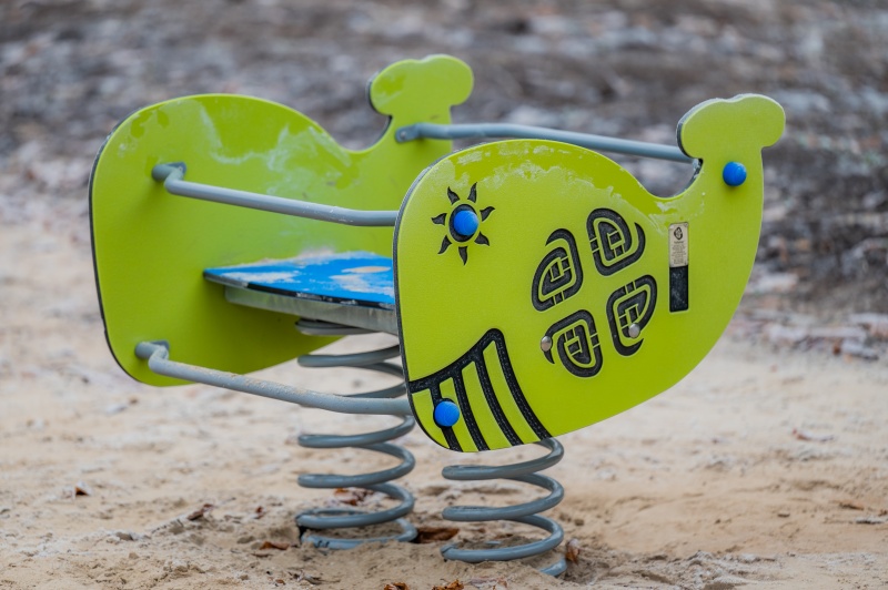 Tvåsitsig fjädergunga i valform för gemensam lek.