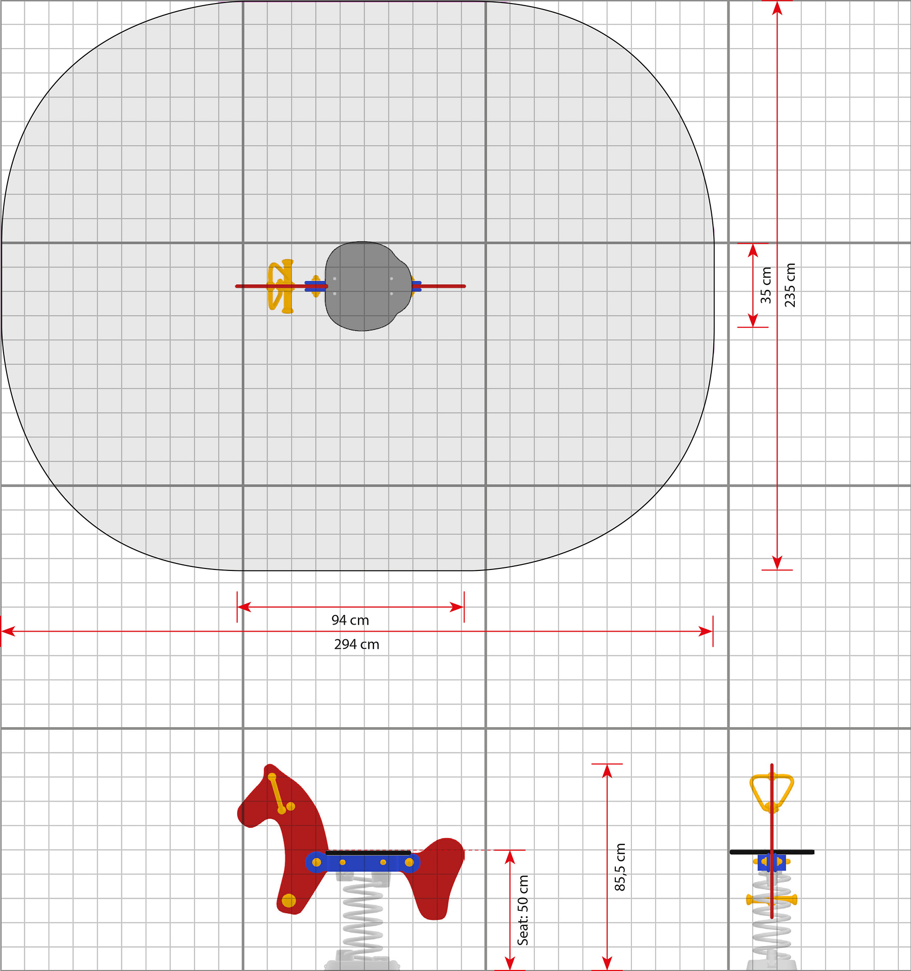 Fjädergunga Faner är utformad för aktiv lek där barn tränar balans, koordination och kroppskontroll. Den fjädrande rörelsen gör leken engagerande samtidigt som den uppmuntrar till upprepning och motorisk utveckling. Produkten lämpar sig för förskola, skolgård och park med höga krav på hållbarhet. Mått (L x B x H): 94 cm x 35 cm x 86 cm. Max fallhöjd: 50 cm. Rekommenderad ålder: Från 2 år.
