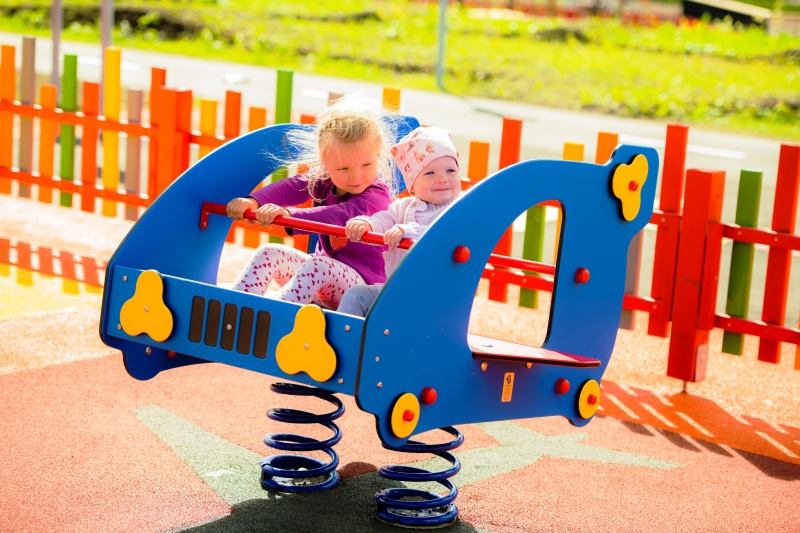 Tvåsitsig fjädergunga med flygtema för aktiv lek.