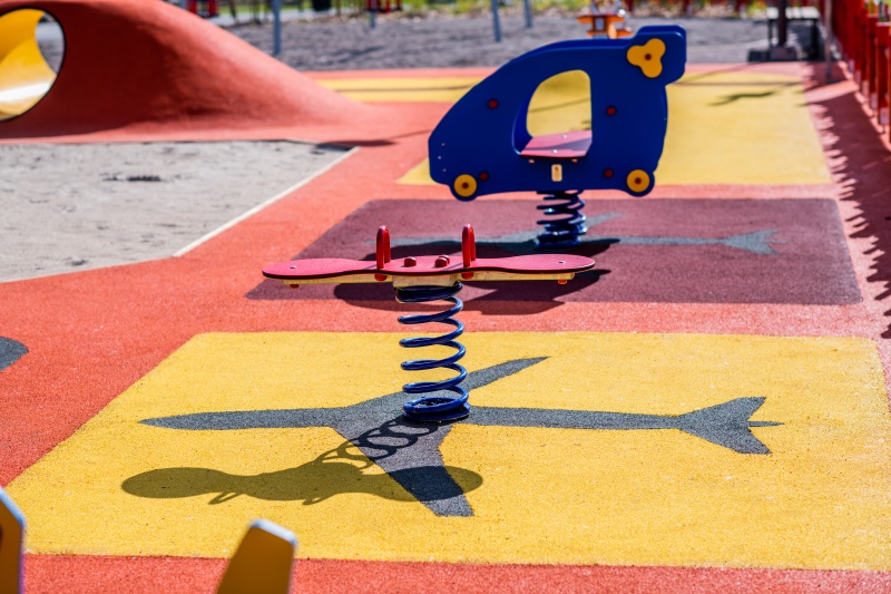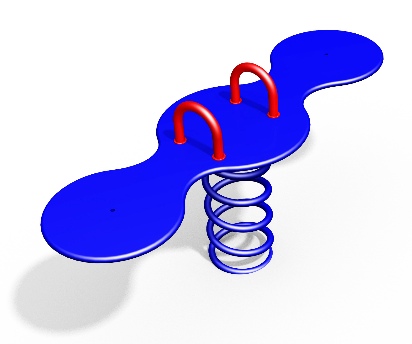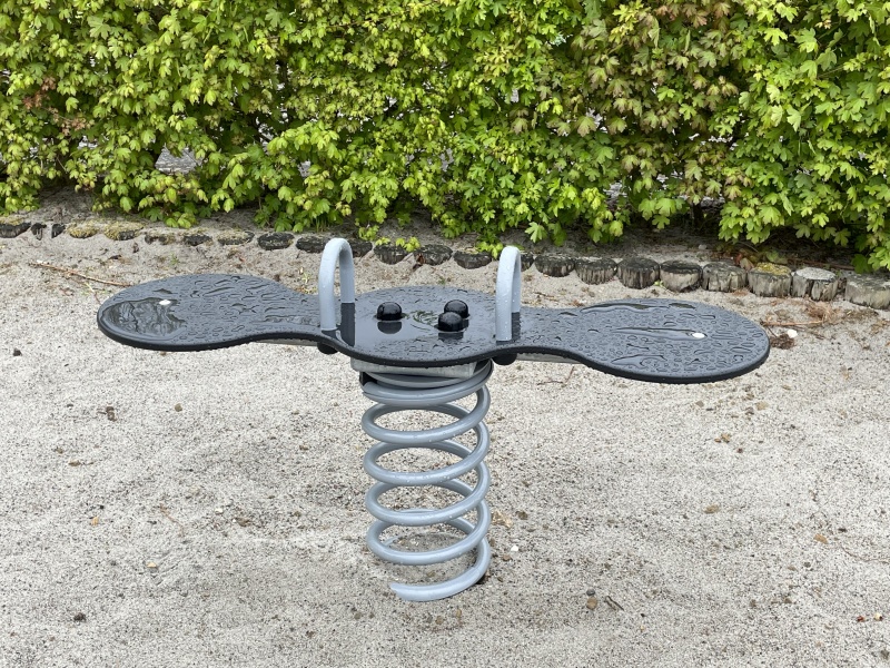 Tvåsitsig fjädergunga där barn gungar mittemot varandra.