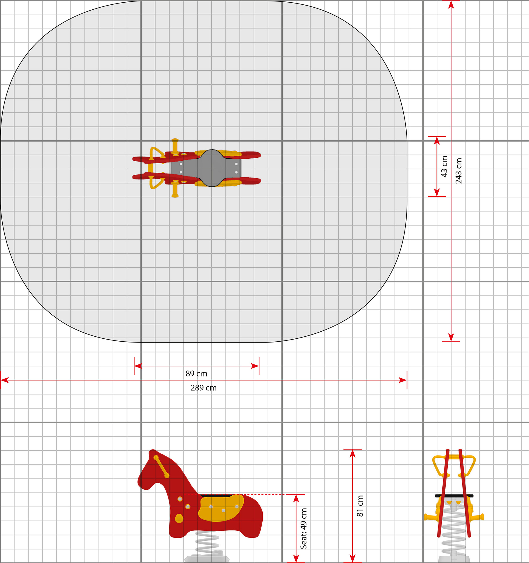 Fjädergunga Olmon är utformad för aktiv lek där barn tränar balans, koordination och kroppskontroll. Den fjädrande rörelsen gör leken engagerande samtidigt som den uppmuntrar till upprepning och motorisk utveckling. Produkten lämpar sig för förskola, skolgård och park med höga krav på hållbarhet. Mått (L x B x H): 89 cm x 43 cm x 81 cm. Max fallhöjd: 49 cm. Rekommenderad ålder: Från 2 år.