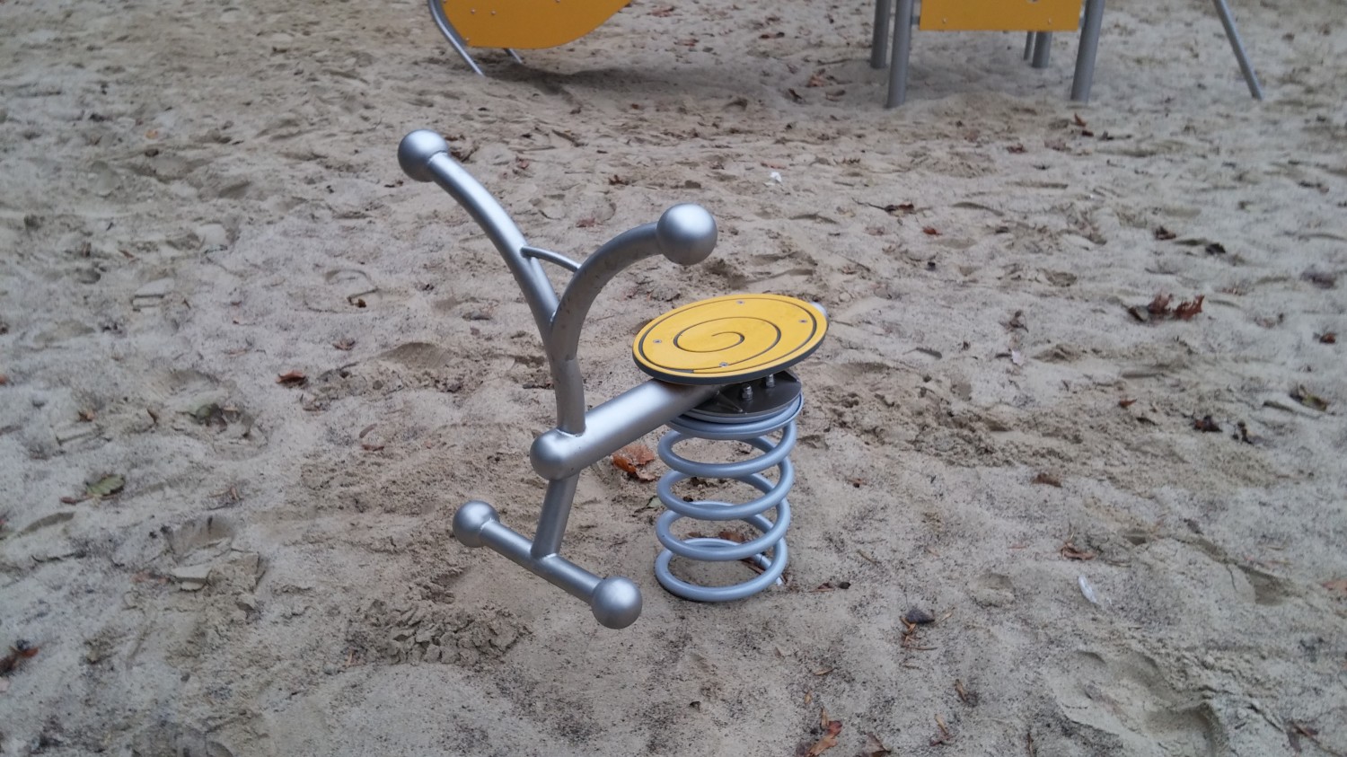 Fjädergunga SIDI 1 för offentlig utemiljö med fokus på säker användning, robust konstruktion och lång livslängd vid daglig drift. Material: rostfritt stål och pulverlackerat stål.