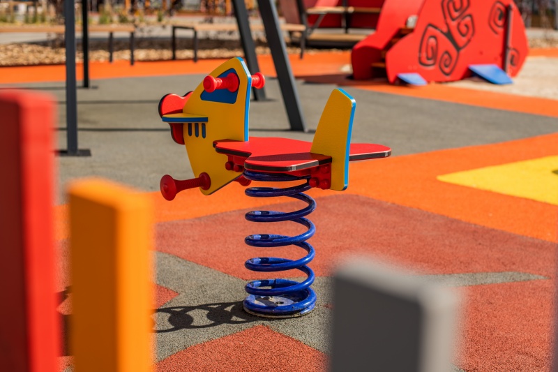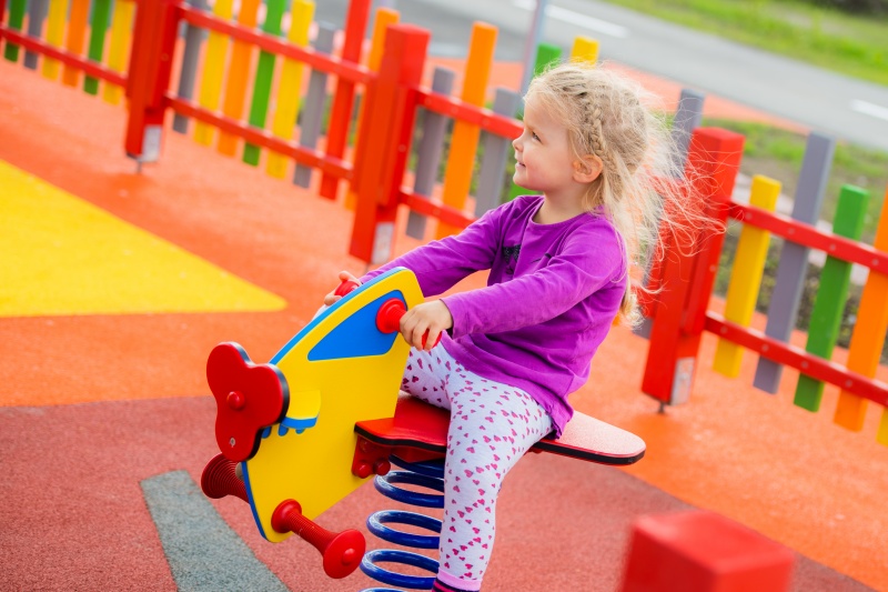 Flygplansformad fjädergunga som inspirerar till rollekar.