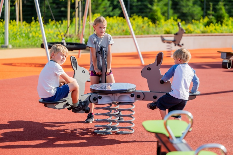 Produkten är en del av FARMLIFE-serien och är utvecklad för lekplatser, förskolegårdar och andra offentliga utemiljöer. Modellen har kanintema och ger en trygg rörelseaktivitet som är lätt att använda i tidig ålder. Produkten bidrar till lekglädje, motorisk träning och social interaktion i gårdsinspirerade lekytor. Konstruktionen är anpassad för regelbunden användning i offentlig drift med fokus på lång livslängd och trygg användning. Mått enligt specifikation: cirka 1,79 x 1,59 x 0,96 m. Rekommenderad ålder: 1+. En hållbar lösning för aktiv och fantasifull lek i farmtematiska miljöer.