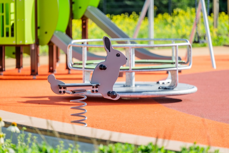 Fjädergunga i serien Tribute to Wildlife för offentlig utemiljö, utvecklad för trygg och lekfull rörelseaktivitet.