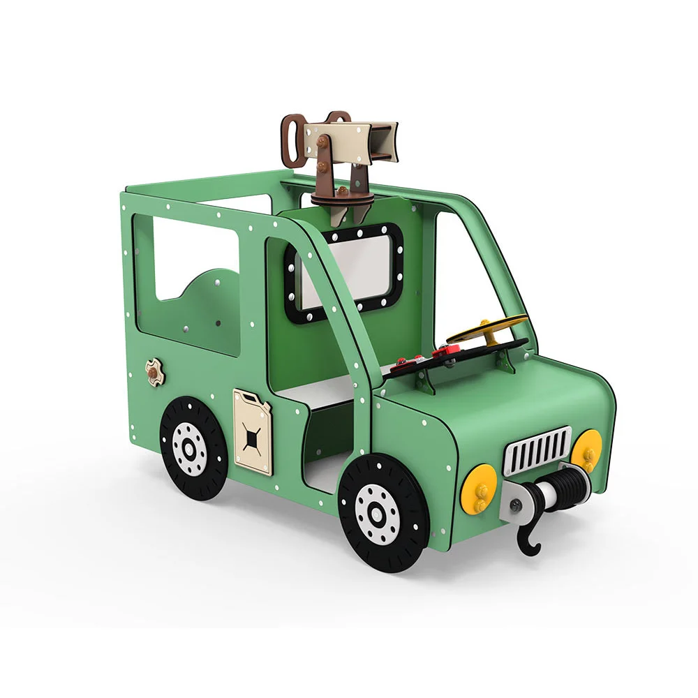 Fordon Elvin är en temaprodukt som skapar tydliga scenarier för fantasifull rolllek. Produkten uppmuntrar kommunikation, samarbete och långvarig lek i grupp. Konstruktionen är robust för offentlig utemiljö. Mått (L x B x H): 162 cm x 83 cm x 125 cm. Max fallhöjd: 51 cm. Rekommenderad ålder: Från 1 år.