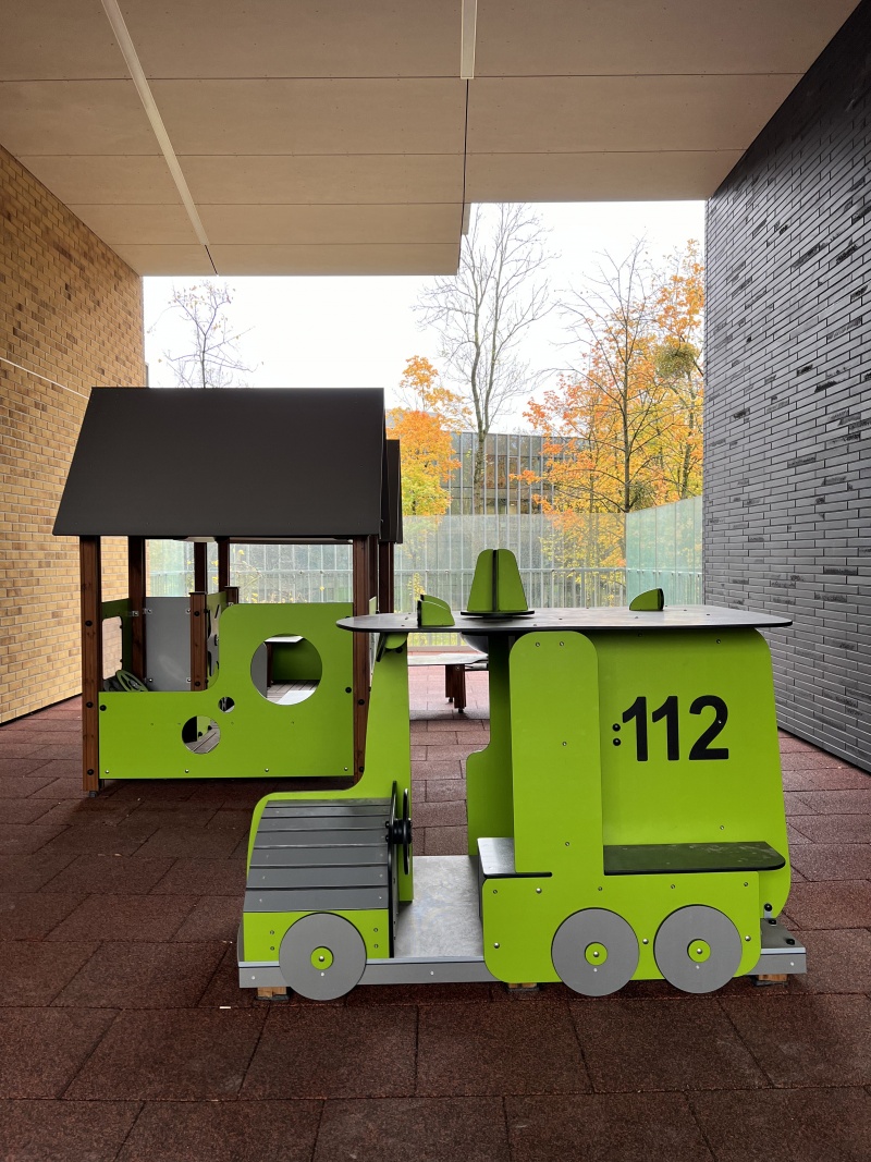 Den spännande rollleksaken NÖD är designad för små barn och rymmer 4–8 barn åt gången. Barnen kan ta roller som förare, räddare eller läkare. Den bakre bänken gör det möjligt för den som behöver hjälp att ligga ner, vilket förstärker rolleksupplevelsen.