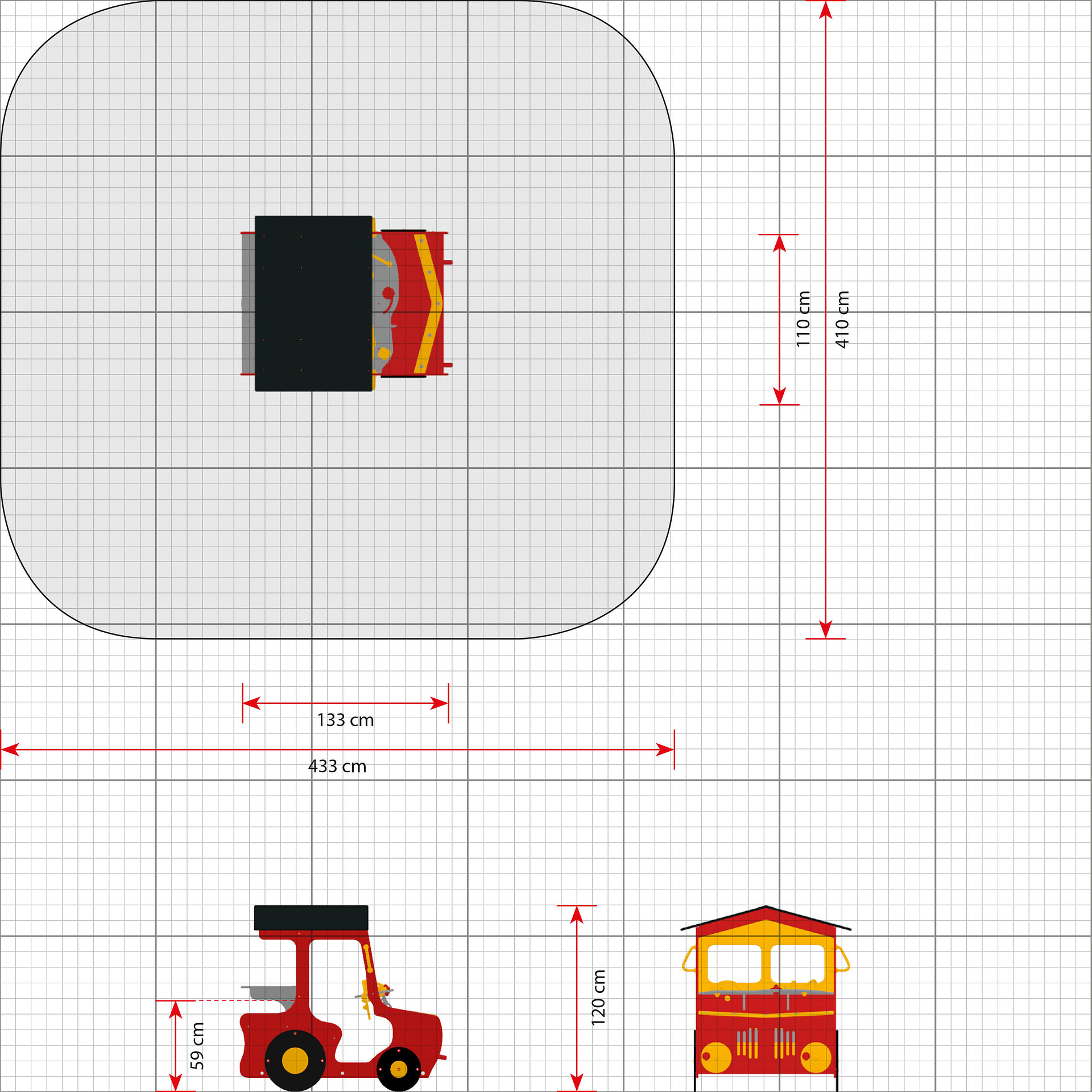 Fordon Piro är en temaprodukt som skapar tydliga scenarier för fantasifull rolllek. Produkten uppmuntrar kommunikation, samarbete och långvarig lek i grupp. Konstruktionen är robust för offentlig utemiljö. Mått (L x B x H): 133 cm x 110 cm x 120 cm. Max fallhöjd: 59 cm. Rekommenderad ålder: Från 2 år.