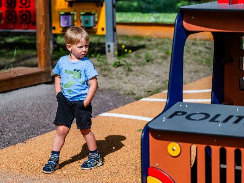 Fordon POLIS är designad för små barn och låter dem ta rollen som polischef. Barnen kan sitta i förarsätet, bromsa och öka hastigheten med pedalerna och utforska fantasivärlden tillsammans med lekkamrater.
