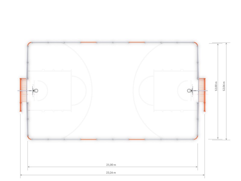 Multiarena Goliat 21 × 12 meter är en rymlig och slitstark aktivitetsarena för miljöer där många vill röra sig, spela och ha roligt tillsammans. Den passar utmärkt på skolgårdar, i parker, bostadsområden, idrottsplatser och fritidsgårdar och blir snabbt en naturlig samlingspunkt för både spontanidrott och organiserade aktiviteter.