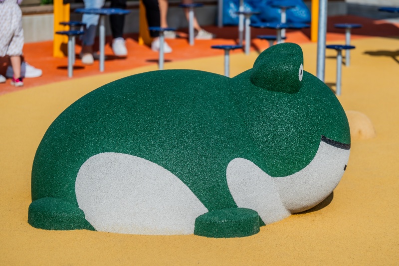 Slitstark 3D-figur av EPDM-granulat och pulverlackerade metalldelar. Monteras med ankarfästen.