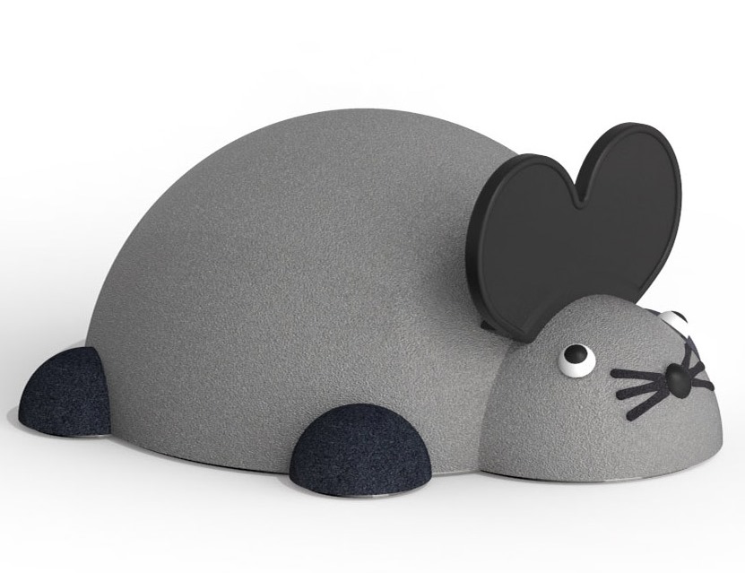 Figur av rostfritt stål med färgad gummibeläggning.