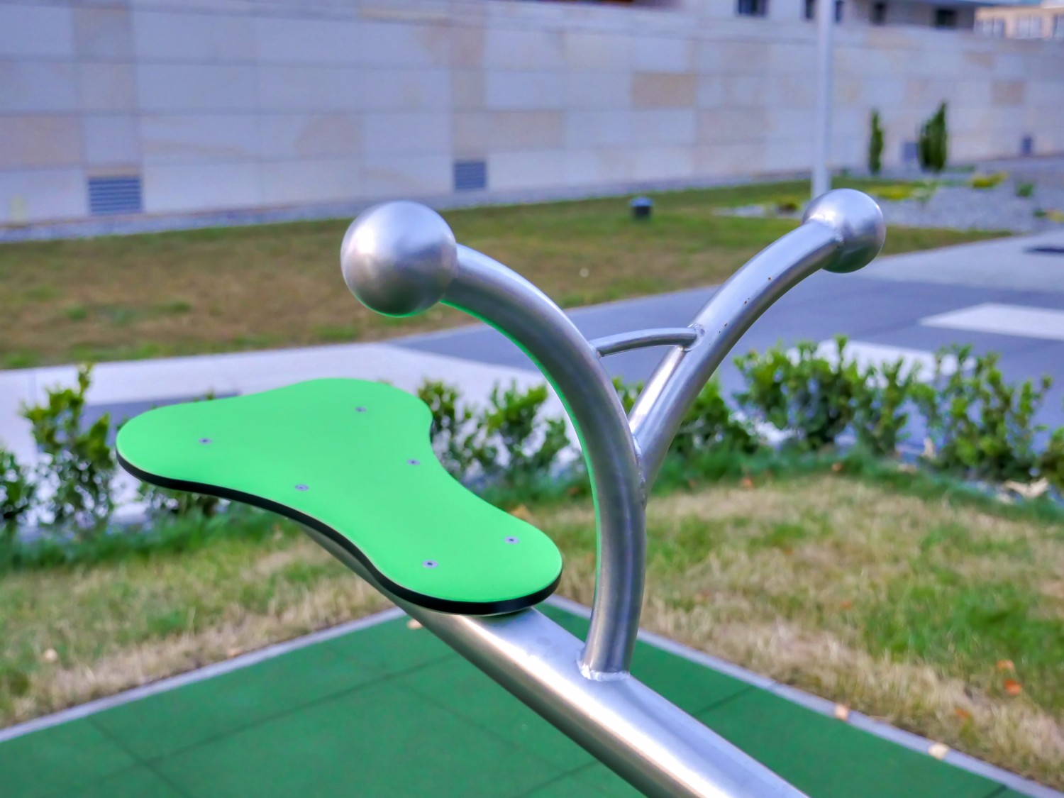 Gungbräda BALANCILO 1 för offentlig utemiljö med fokus på säker användning, robust konstruktion och lång livslängd vid daglig drift. Material: rostfritt stål.