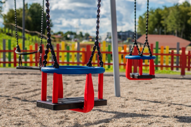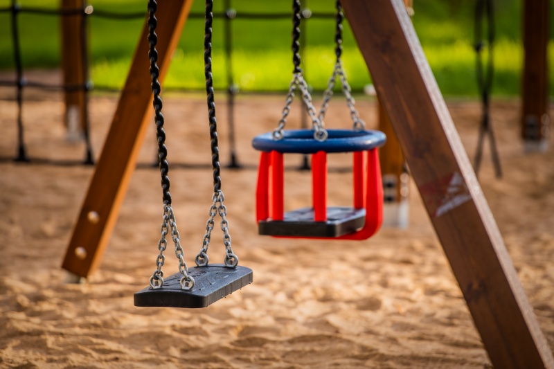 Säker, TÜV-certifierad babygunga med galvaniserade kedjor.