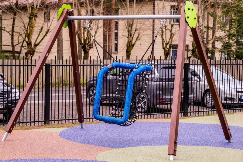 TÜV-certifierad sitsgunga med robust ram i varmförzinkad metall.