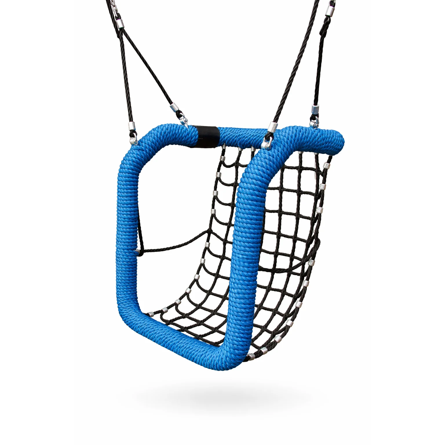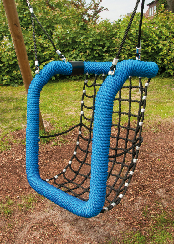 Gungsits med PP-repsäte och 16 mm stålkärna, komplett med hänglinor och rostfria kullagerfästen. Passar 1-sitsramar. Ram i D120 mm varmförzinkad metall.
