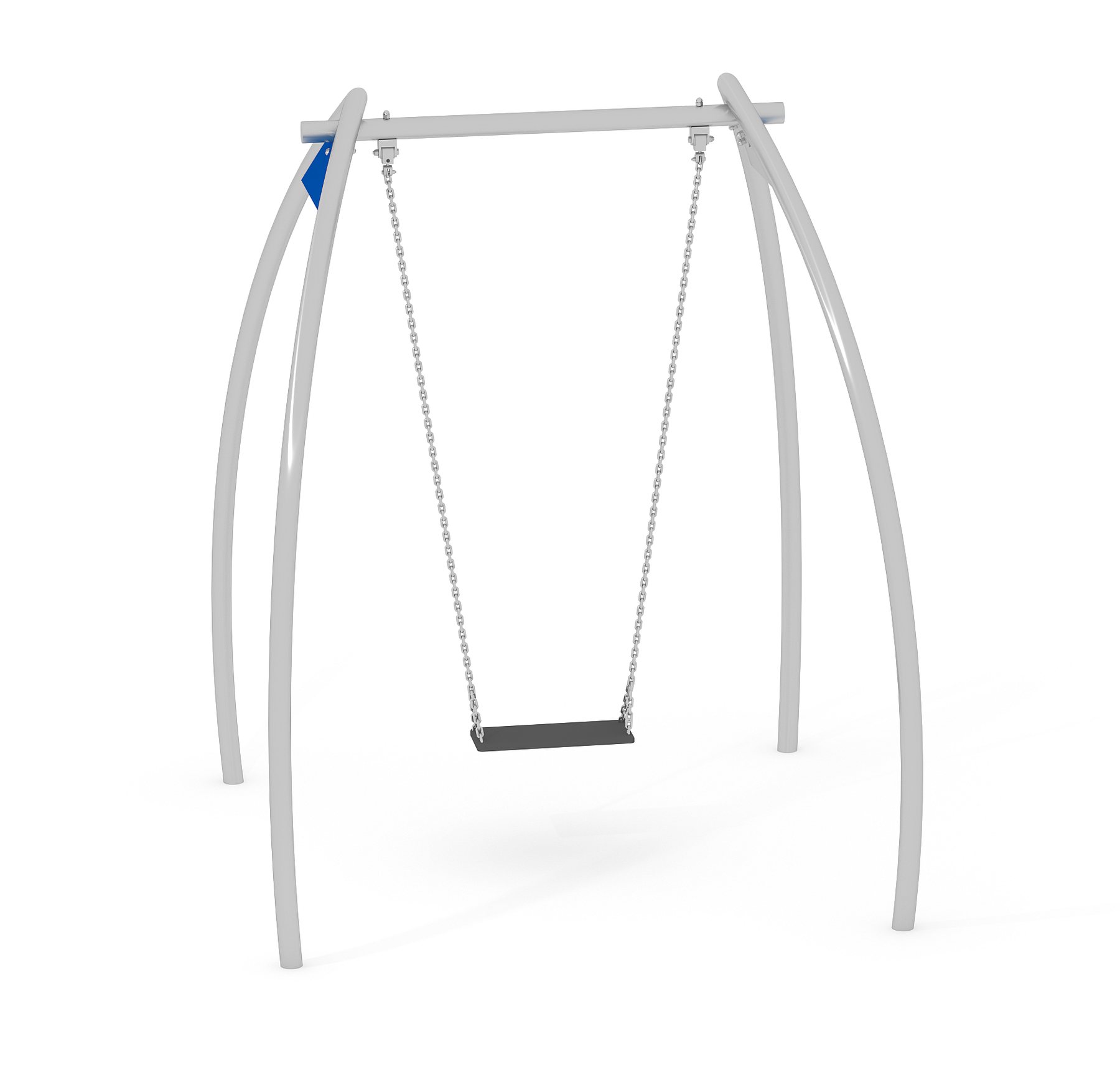 Gungställning Alraen i rostfritt stål och HDPE för offentlig miljö.