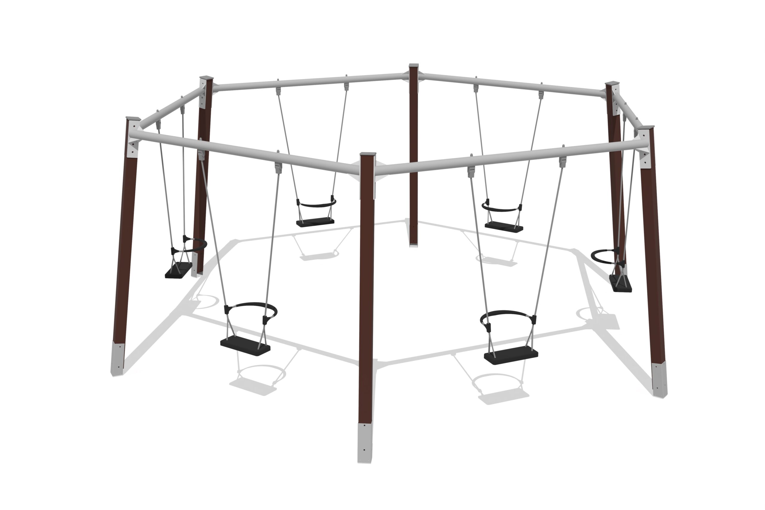 Cirkelformad gunga med sex sittplatser för gemensam lek.