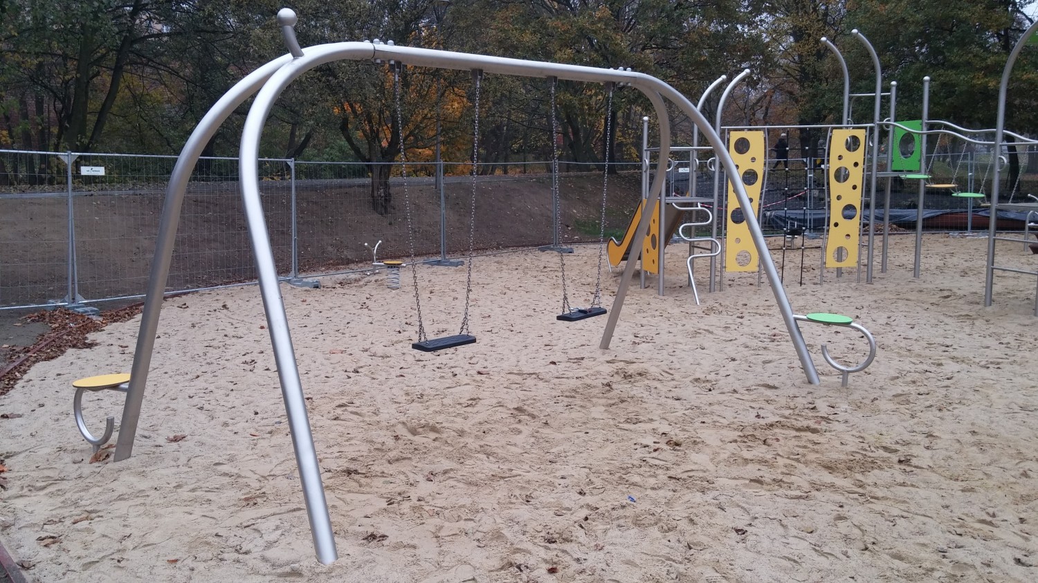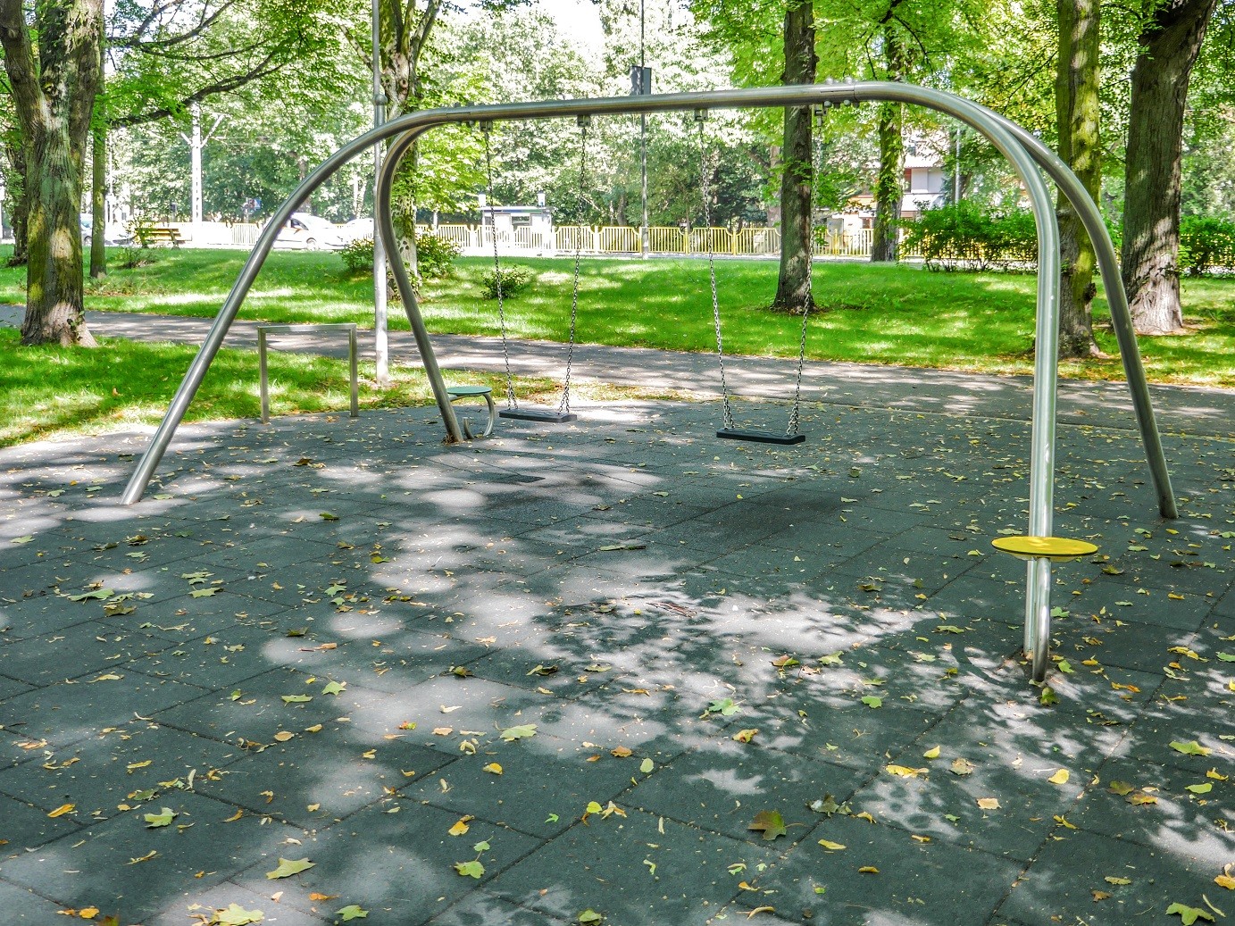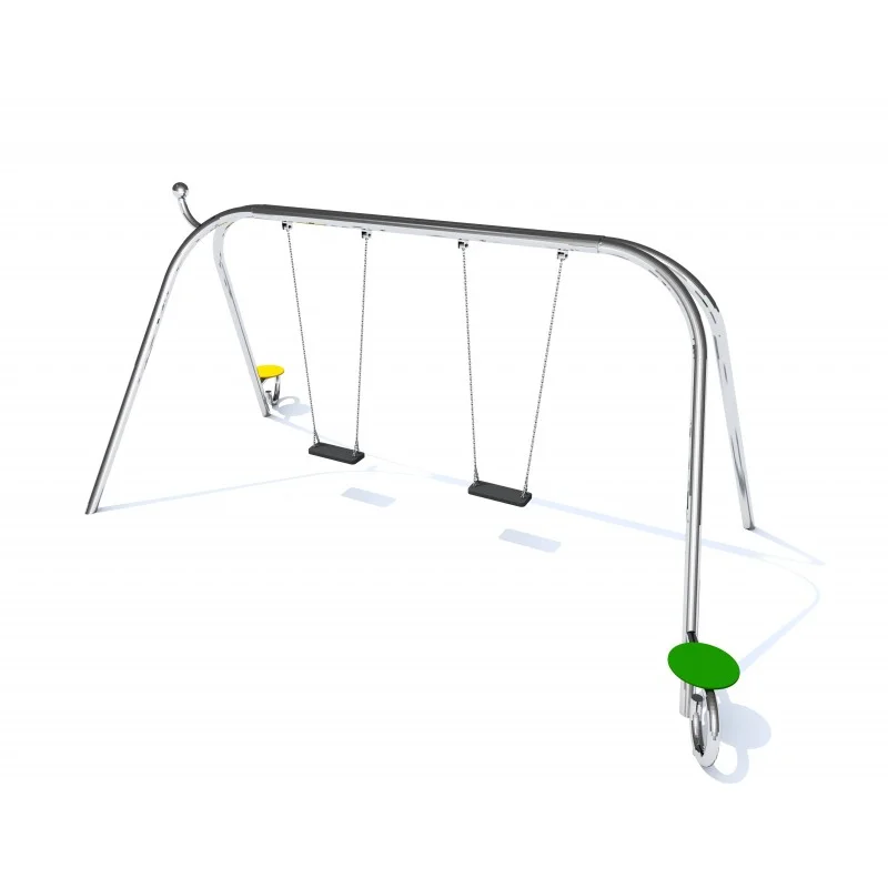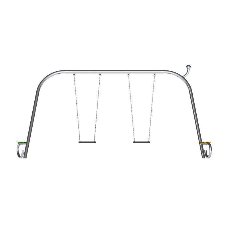 Gungställning ENIRO 1 för offentlig utemiljö med fokus på säker användning, robust konstruktion och lång livslängd vid daglig drift. Material: rostfritt stål och pulverlackerat stål.