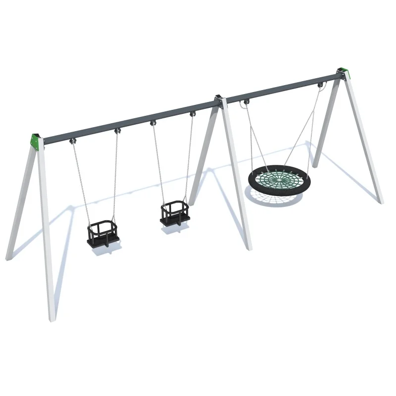 Gungställning NEPTUNE 2 för offentlig utemiljö med fokus på säker användning, robust konstruktion och lång livslängd vid daglig drift. Material: galvaniserat stål.