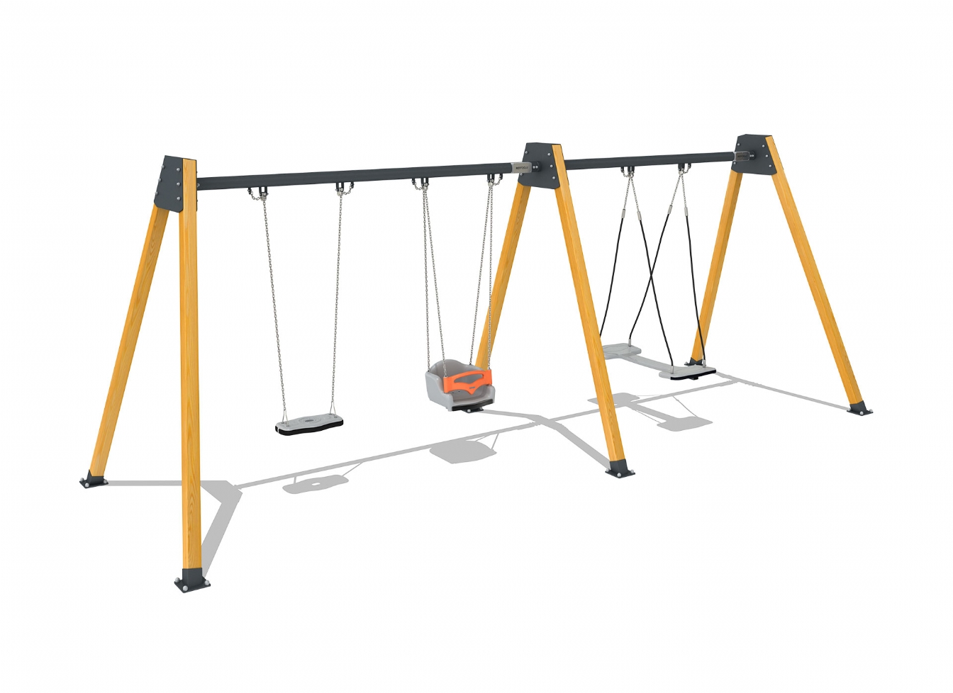 Gungställning Ralela är utvecklad för lekplatser där man vill erbjuda klassisk gunglek med hög kapacitet och tålig konstruktion. Produkten har höjd 670 cm. Specifikationen omfattar säkerhetszon L 970 x W 768. Utförandet i polykarbonat och träen ger en tålig konstruktion som lämpar sig för återkommande användning i krävande miljöer.