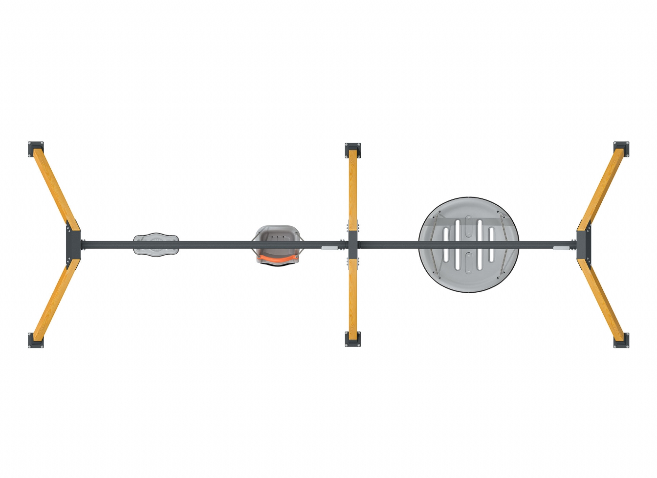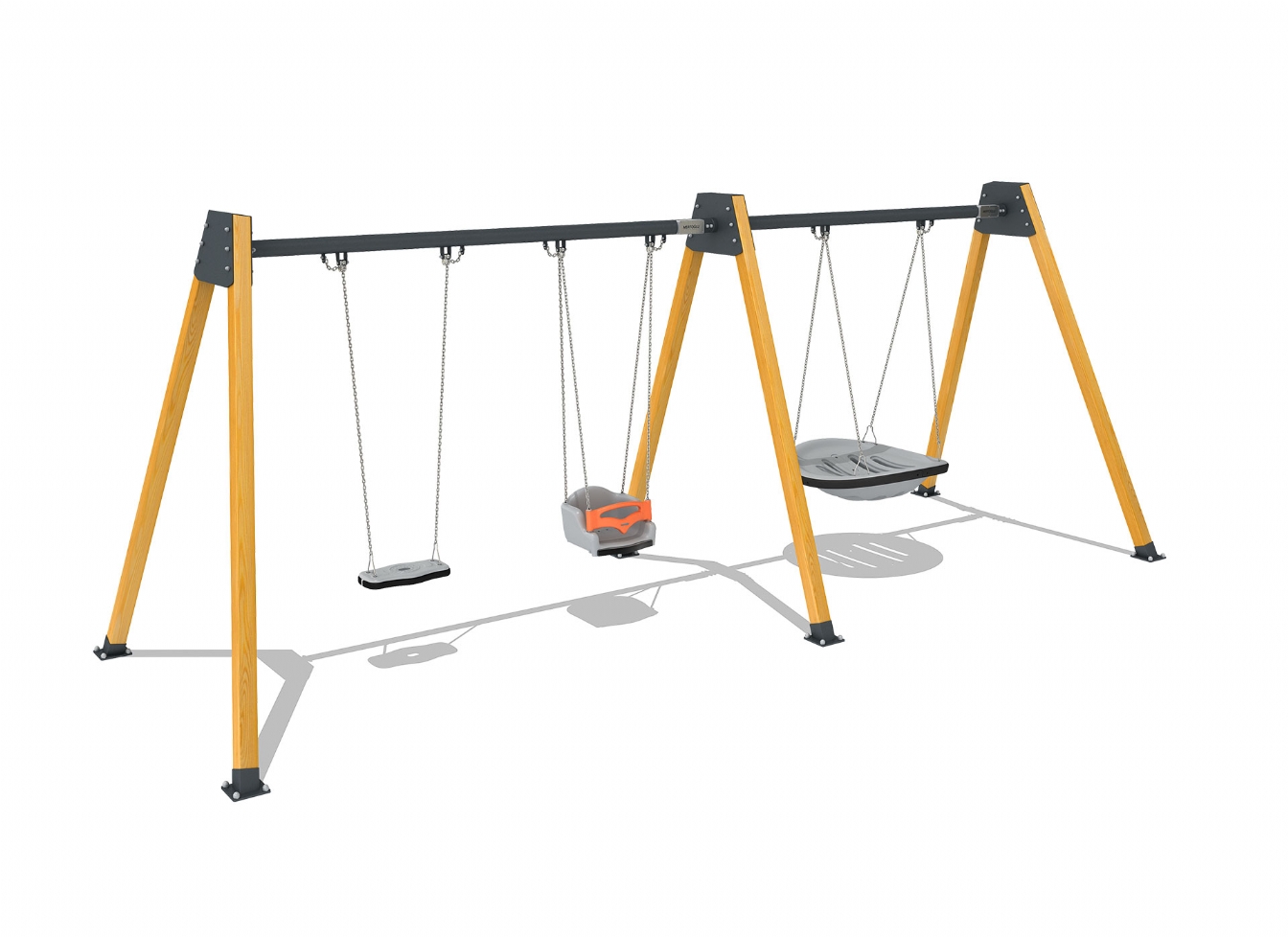 Gungställning Ralena är utvecklad för lekplatser där man vill erbjuda klassisk gunglek med hög kapacitet och tålig konstruktion. Produkten har höjd 670 cm. Specifikationen omfattar säkerhetszon L 970 x W 768. Utförandet i polykarbonat och träen ger en tålig konstruktion som lämpar sig för återkommande användning i krävande miljöer.