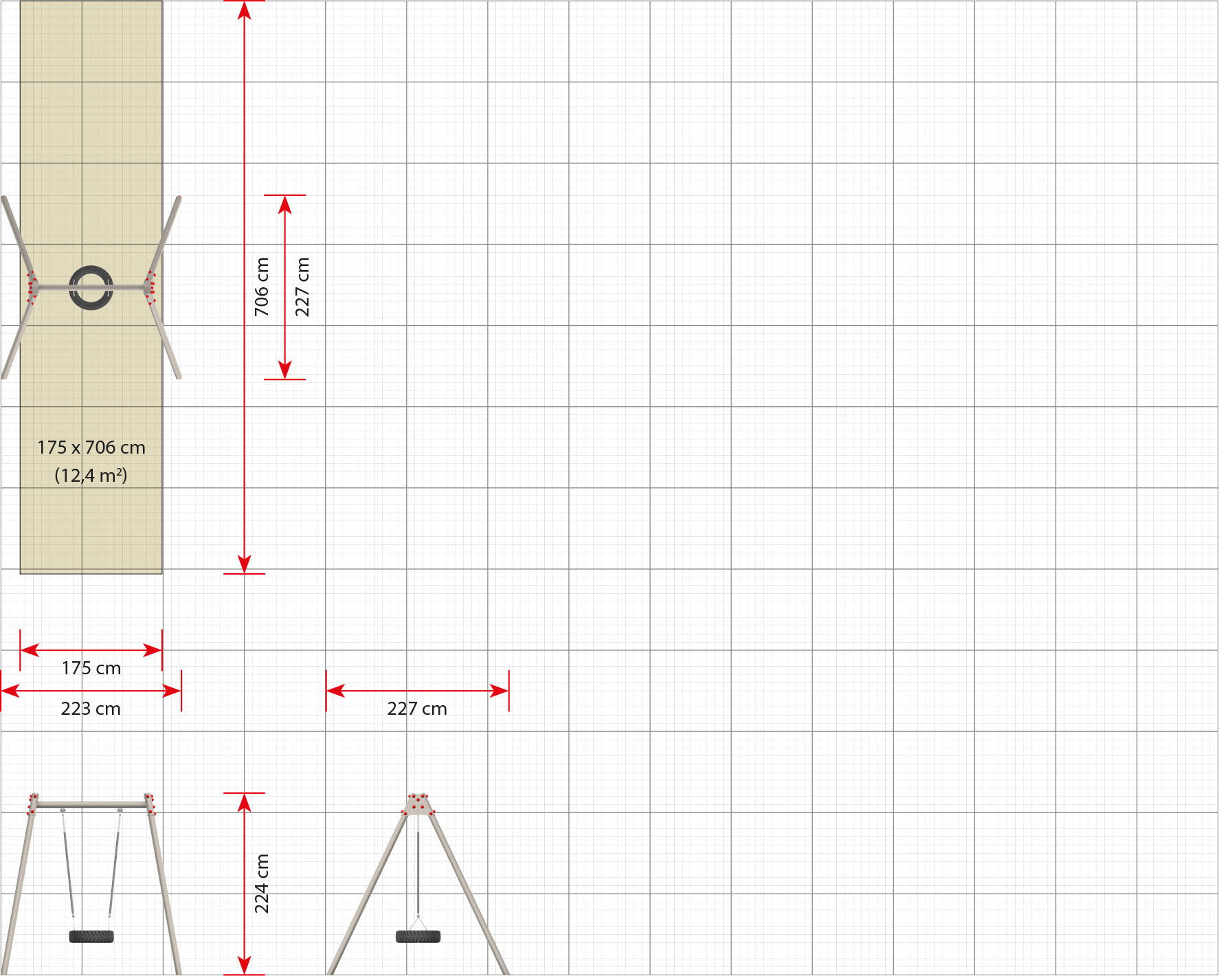 Gungställning Ranor är en hållbar lösning för daglig gunglek i offentlig miljö. Konstruktionen är framtagen för hög belastning och lång livslängd, samtidigt som den skapar en trygg och attraktiv lekpunkt. Gunglek stärker barns rytm, balans och samspel i både fri lek och organiserad aktivitet. Mått (L x B x H): 223 cm x 227 cm x 224 cm. Max fallhöjd: 129 cm. Rekommenderad ålder: Från 3 år.
