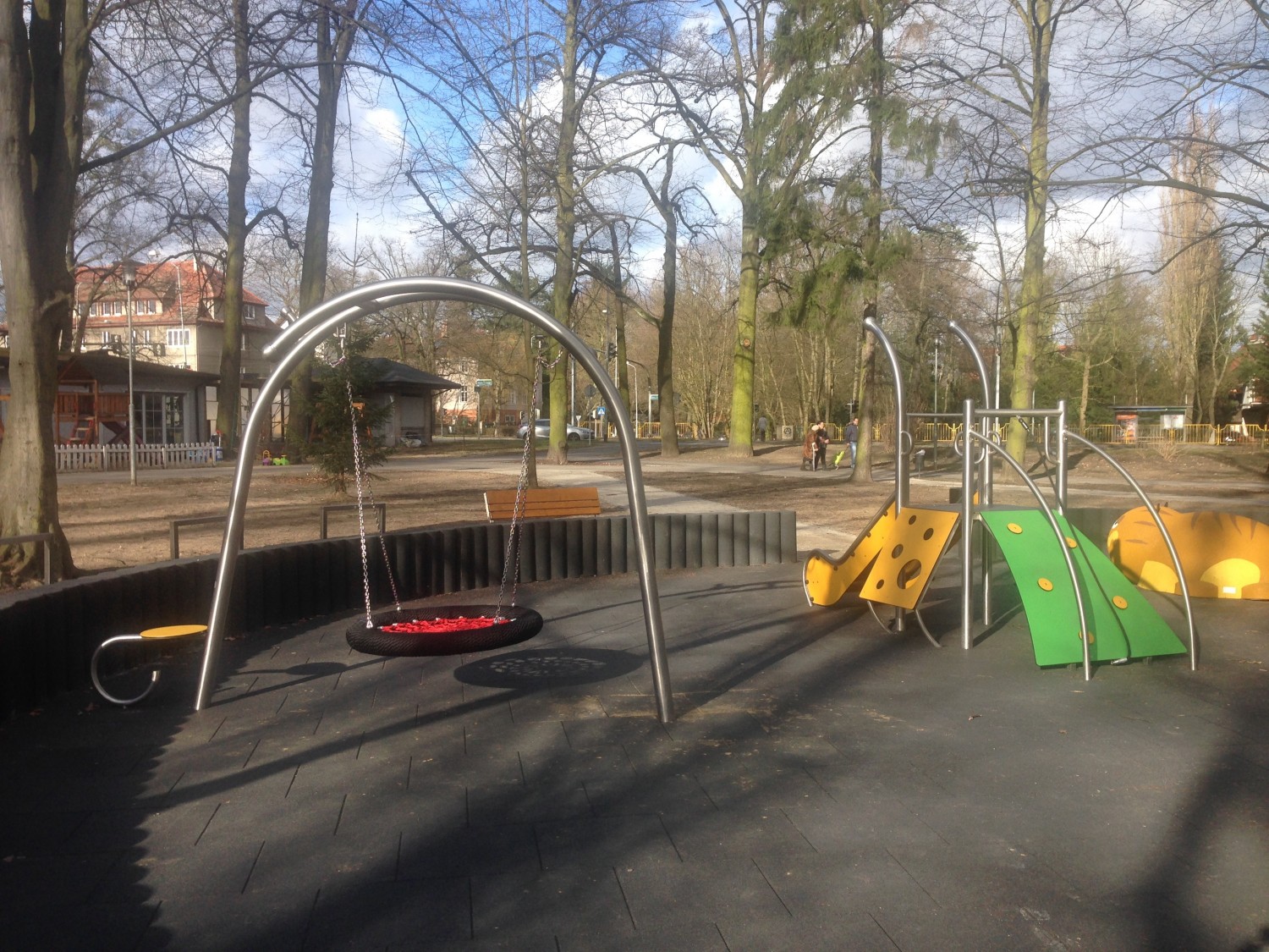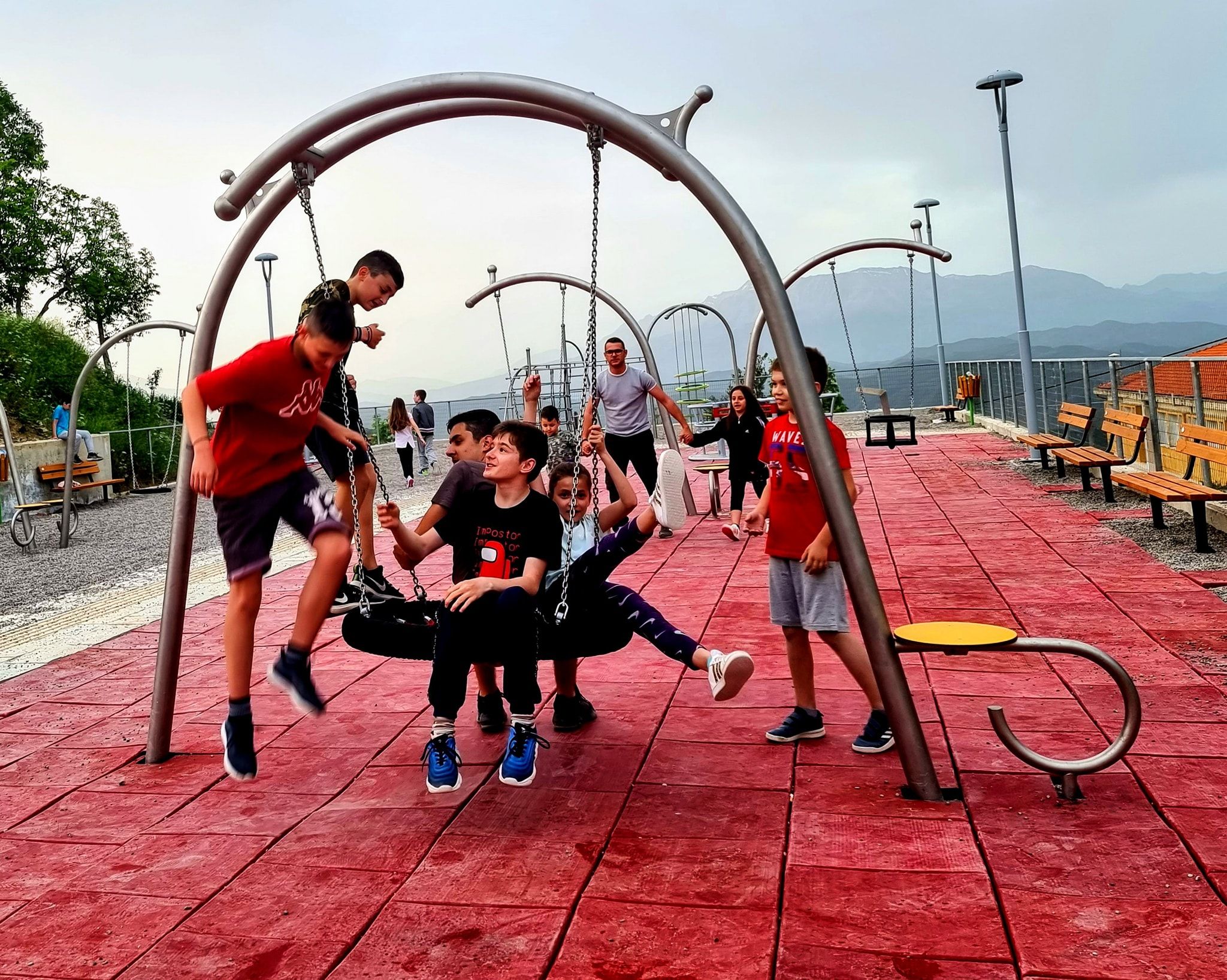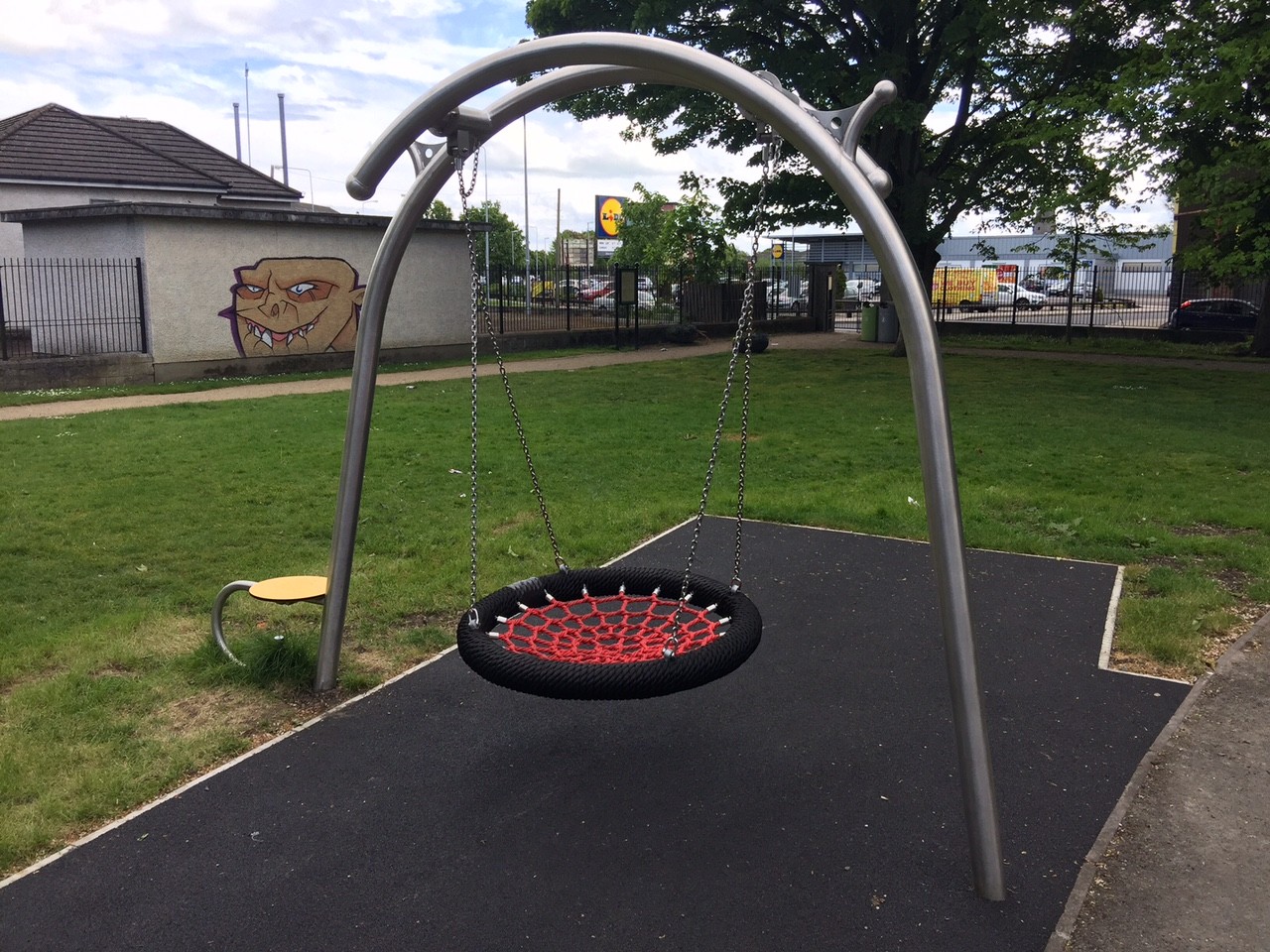 Gungställning Sväng BIRDO för offentlig utemiljö med fokus på säker användning, robust konstruktion och lång livslängd vid daglig drift. Material: rostfritt stål och pulverlackerat stål.