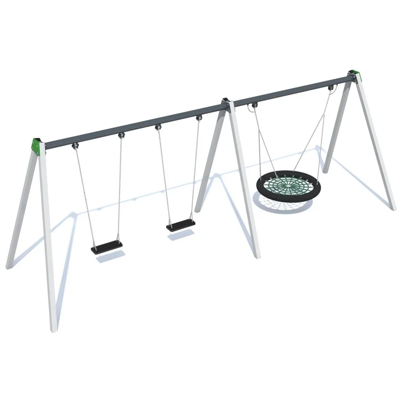 Gungställning Sväng NEPTUNE 1 för offentlig utemiljö med fokus på säker användning, robust konstruktion och lång livslängd vid daglig drift. Material: galvaniserat stål.